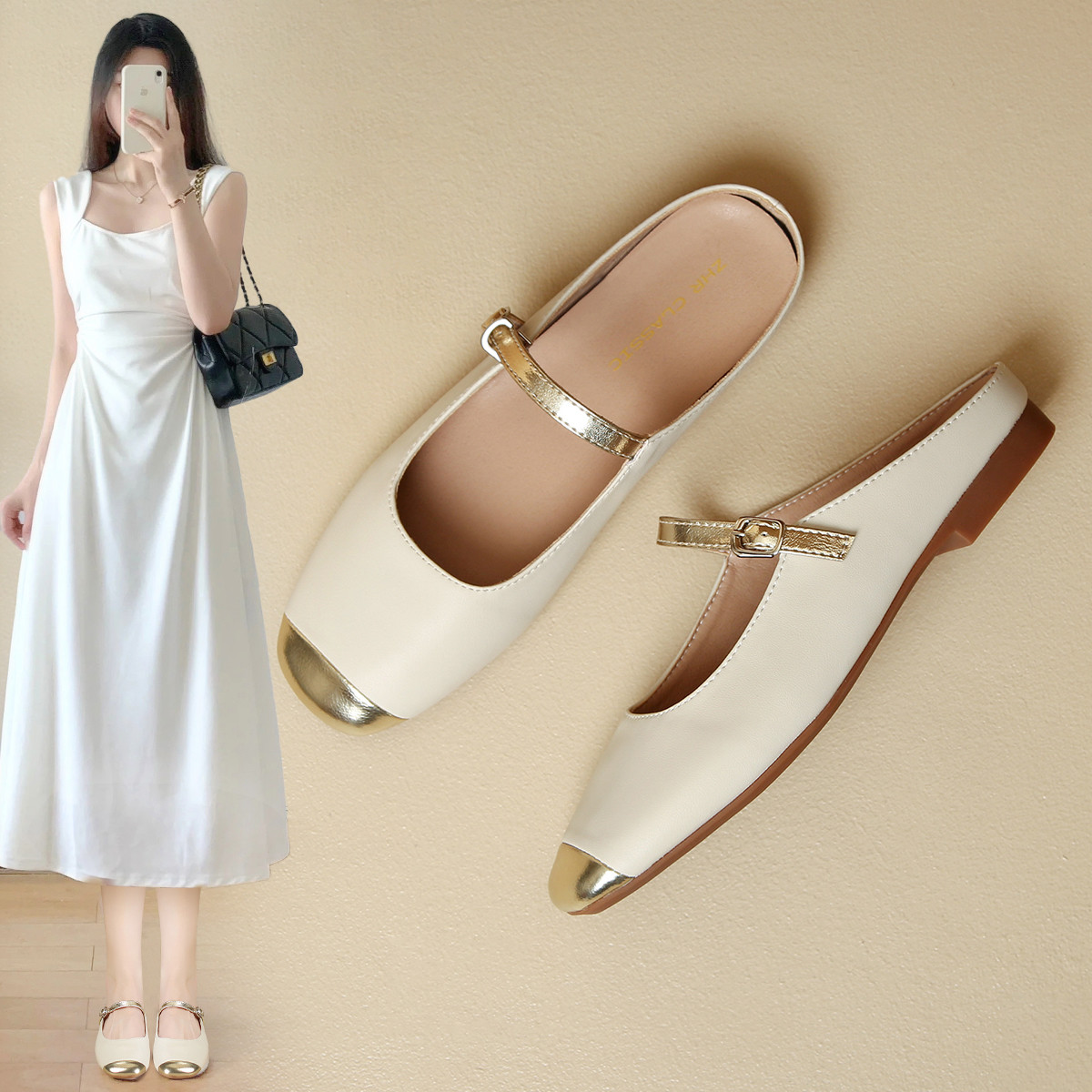 【复古撞色】百搭一脚蹬方头半拖鞋女穆勒拖鞋女鞋夏凉拖鞋女外穿 815744