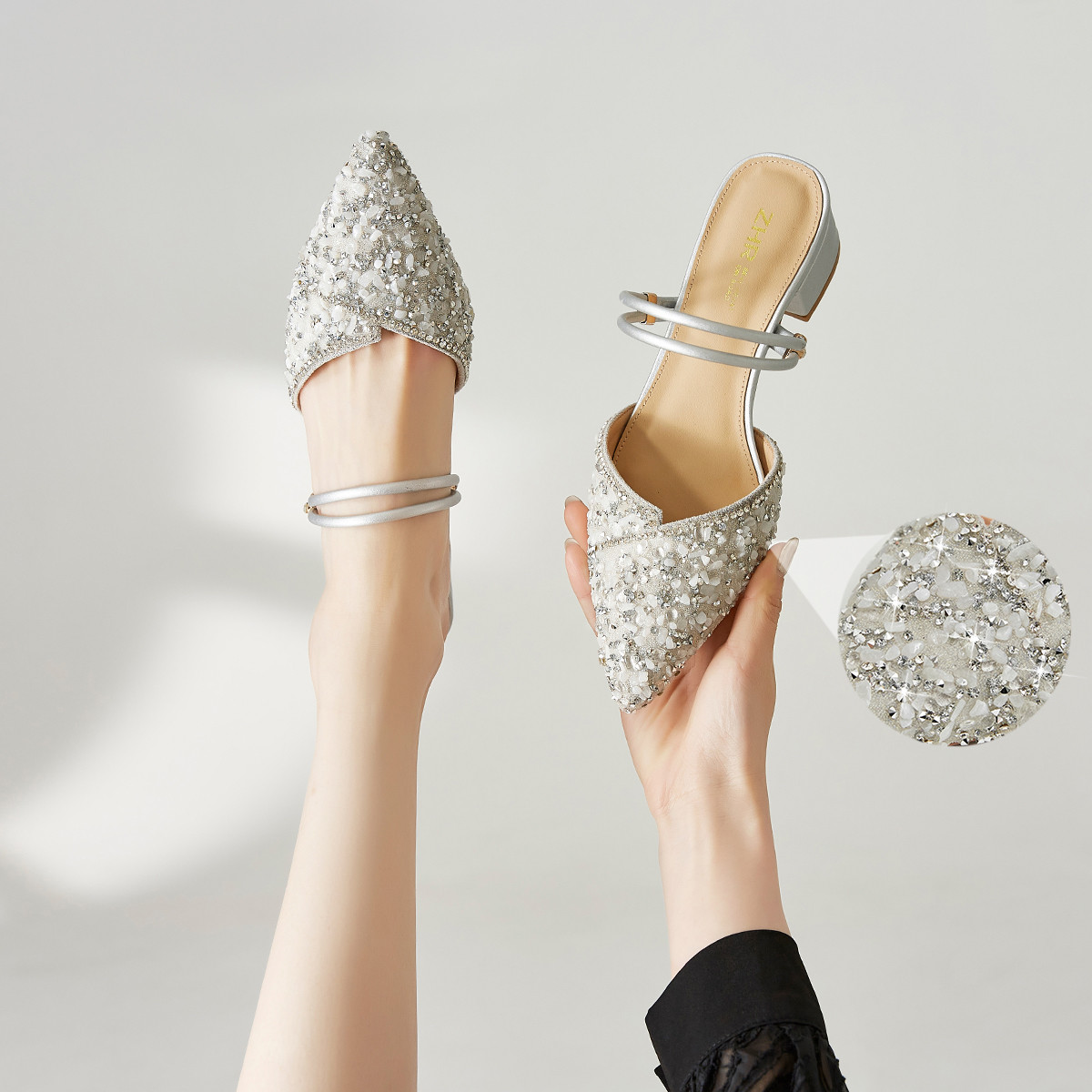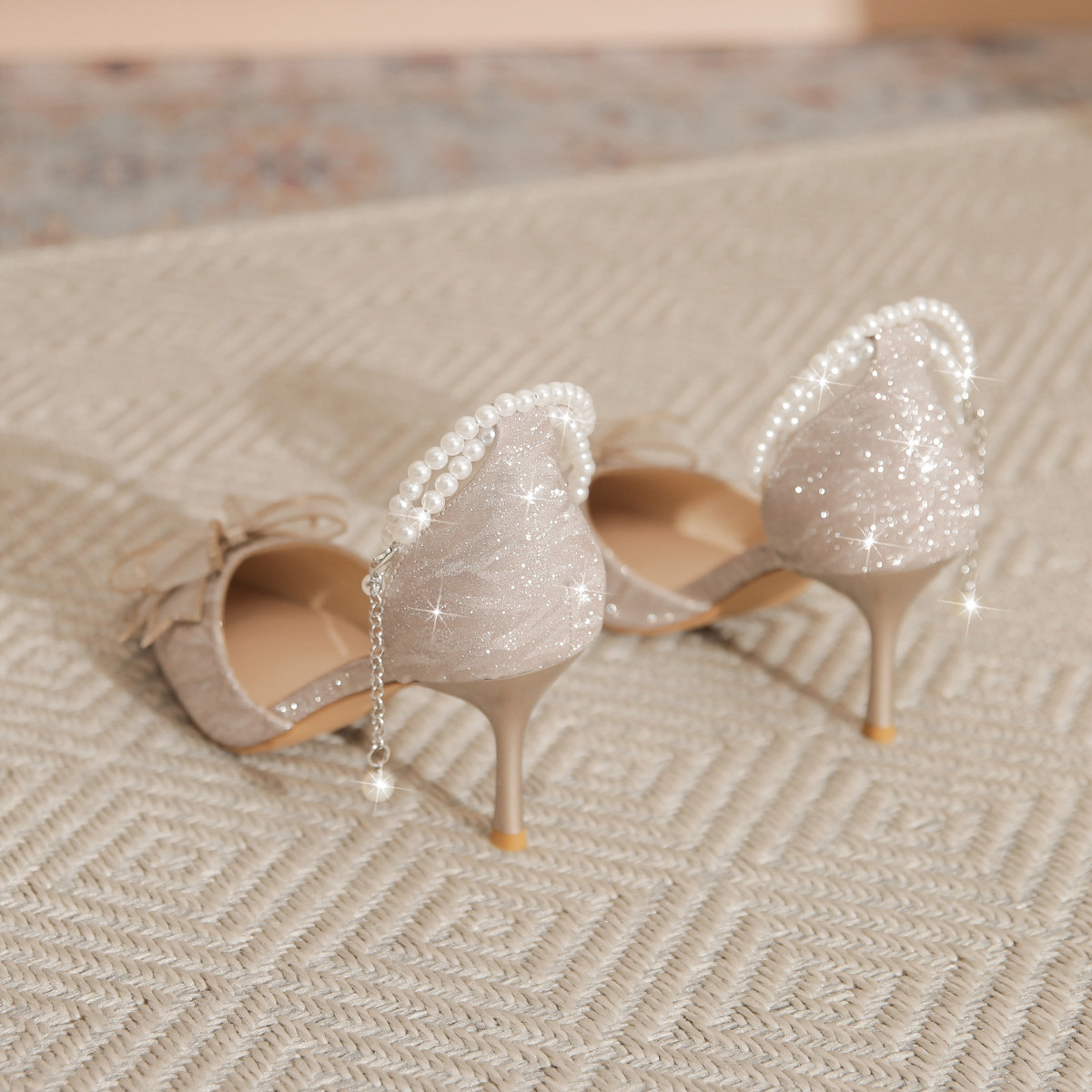 【珍珠链+蝴蝶结】闪亮水钻婚鞋伴娘鞋气质高跟鞋尖头凉鞋女夏季 392960