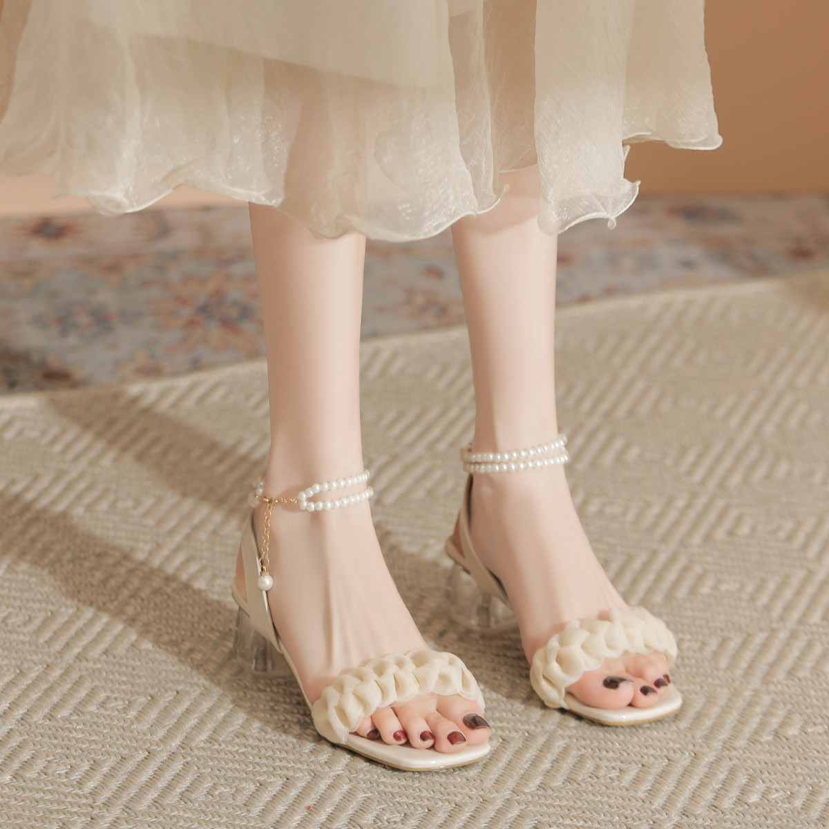 【珍珠链条】百搭后空凉鞋一字带女士凉鞋粗跟凉鞋时尚夏季女凉鞋 297280