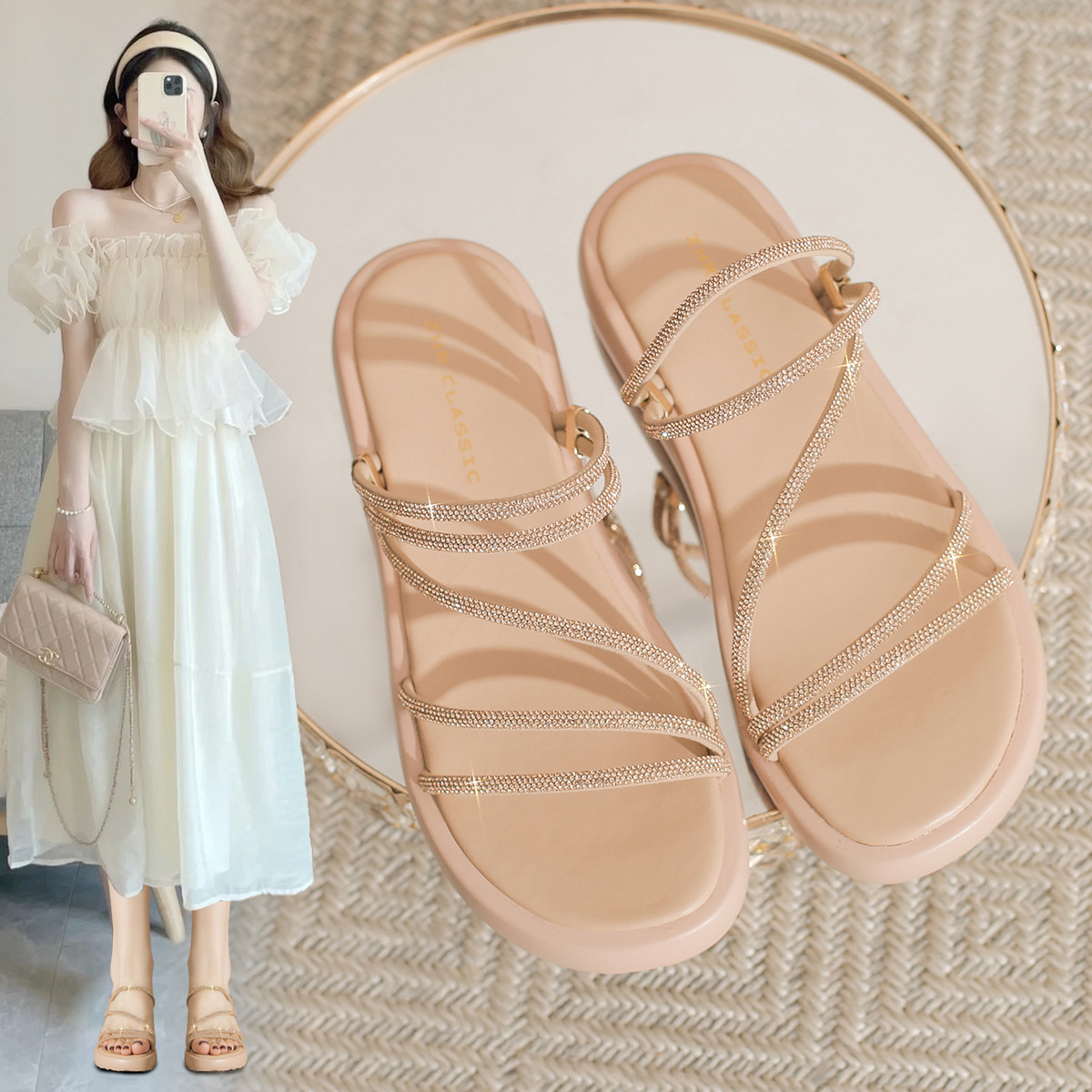 【一鞋两穿】轻奢水钻中空凉鞋沙滩凉拖外穿舒适一字带凉鞋女夏季 327552