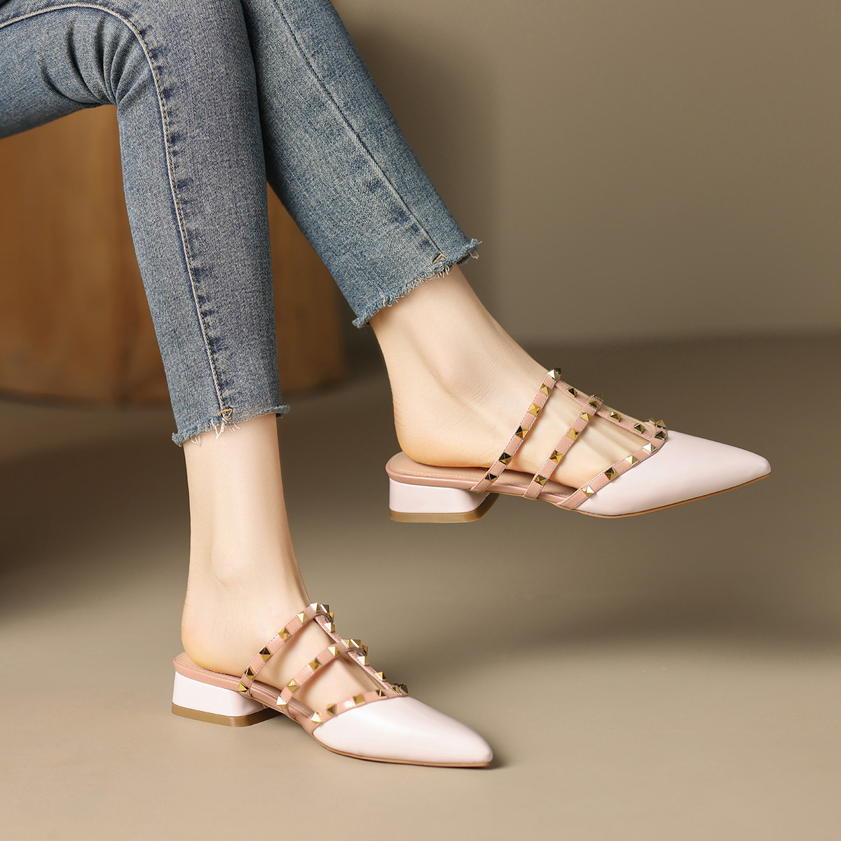【气质铆钉】穆勒鞋半拖女鞋粗跟凉拖鞋夏季外穿拖鞋凉鞋拖鞋女士 716672