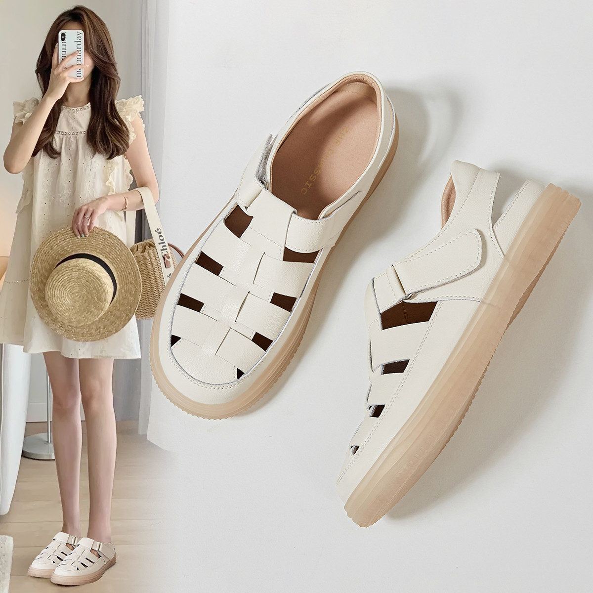 【牛剖层革】百搭镂空女鞋包头凉鞋女罗马凉鞋女夏天猪笼凉鞋女鞋 646336