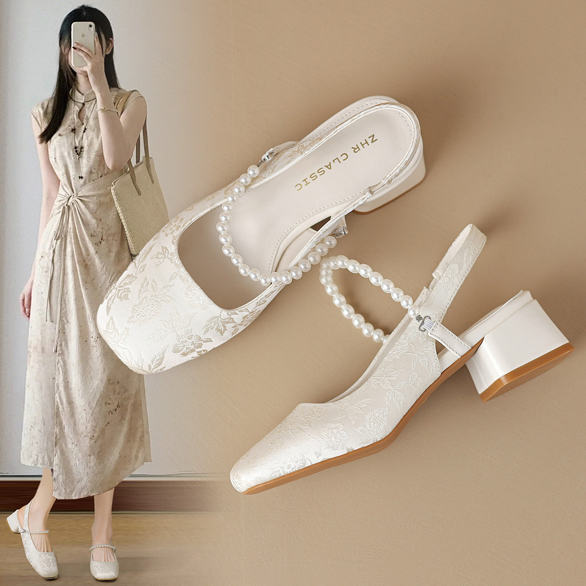 【新中式】国风刺绣粗跟包头凉鞋后空凉鞋凉鞋女夏天女士凉鞋 496128