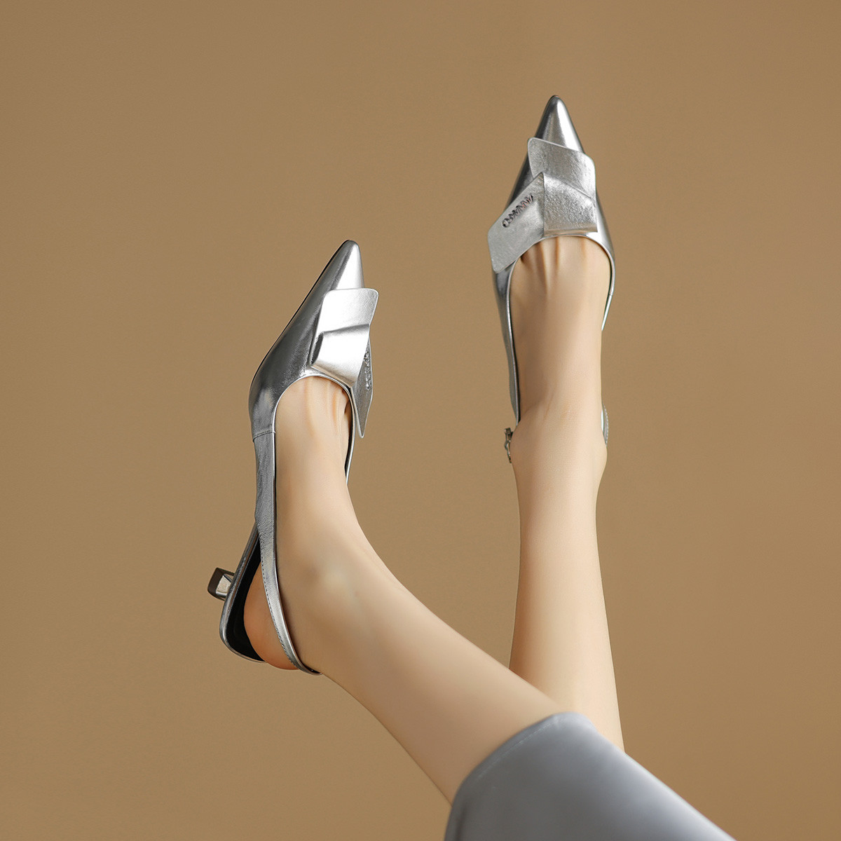 【牛皮】安娜蔻夏季时尚气质尖头高跟鞋真皮百搭后空凉鞋通勤女鞋 450188