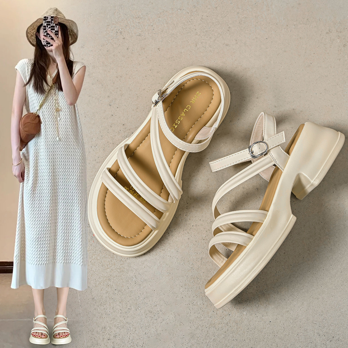 【金属搭扣】一字带鞋罗马鞋女2024款厚底凉鞋女士夏季凉鞋女 438656