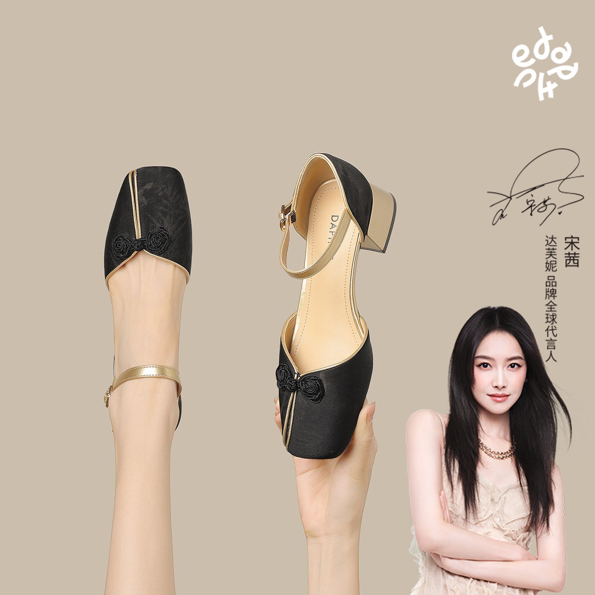 百丽锦绣新中式包头凉鞋女款春夏粗跟绝美凉鞋 747610