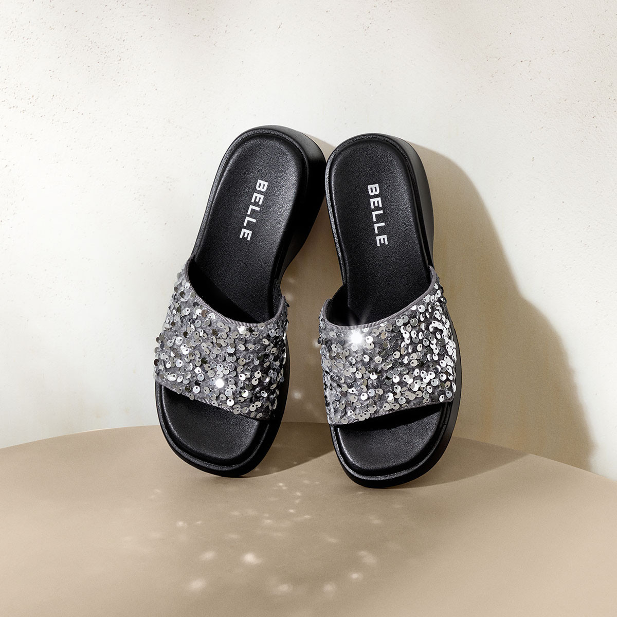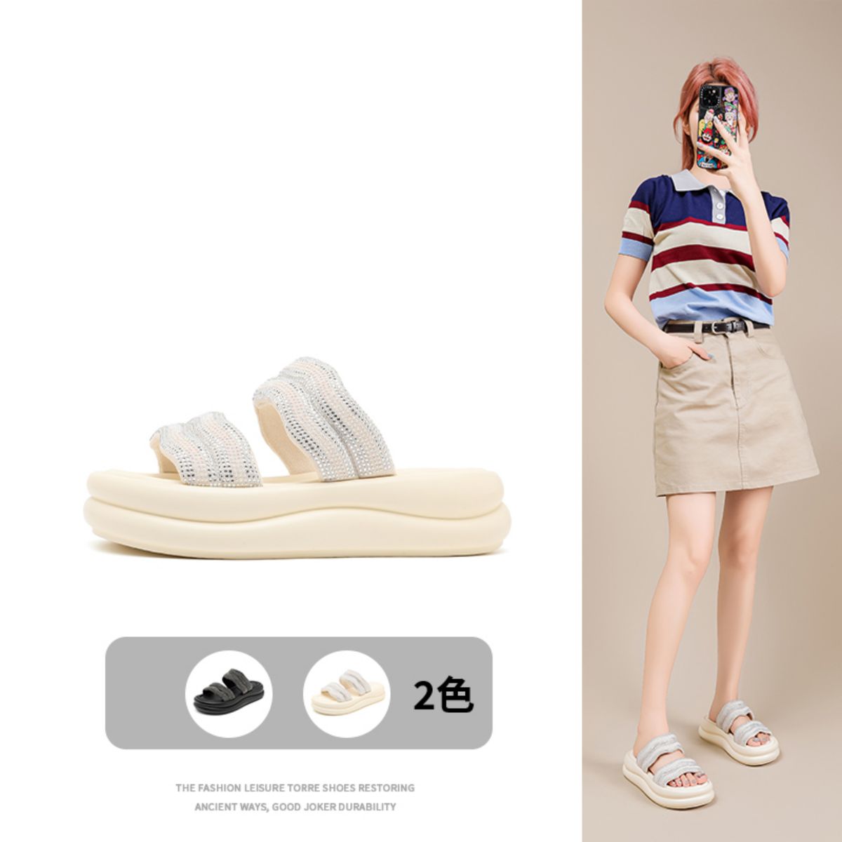 【厚底增高】爆款夏季运动凉鞋女厚底沙滩凉鞋亮片一字带凉拖鞋 189975