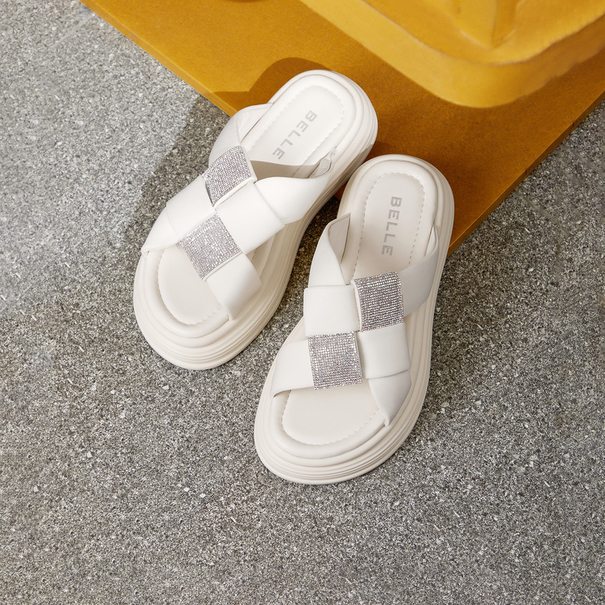 【爆款推荐】百丽女鞋子厚底一字带拖鞋可外穿休闲凉拖鞋女夏外穿 942618