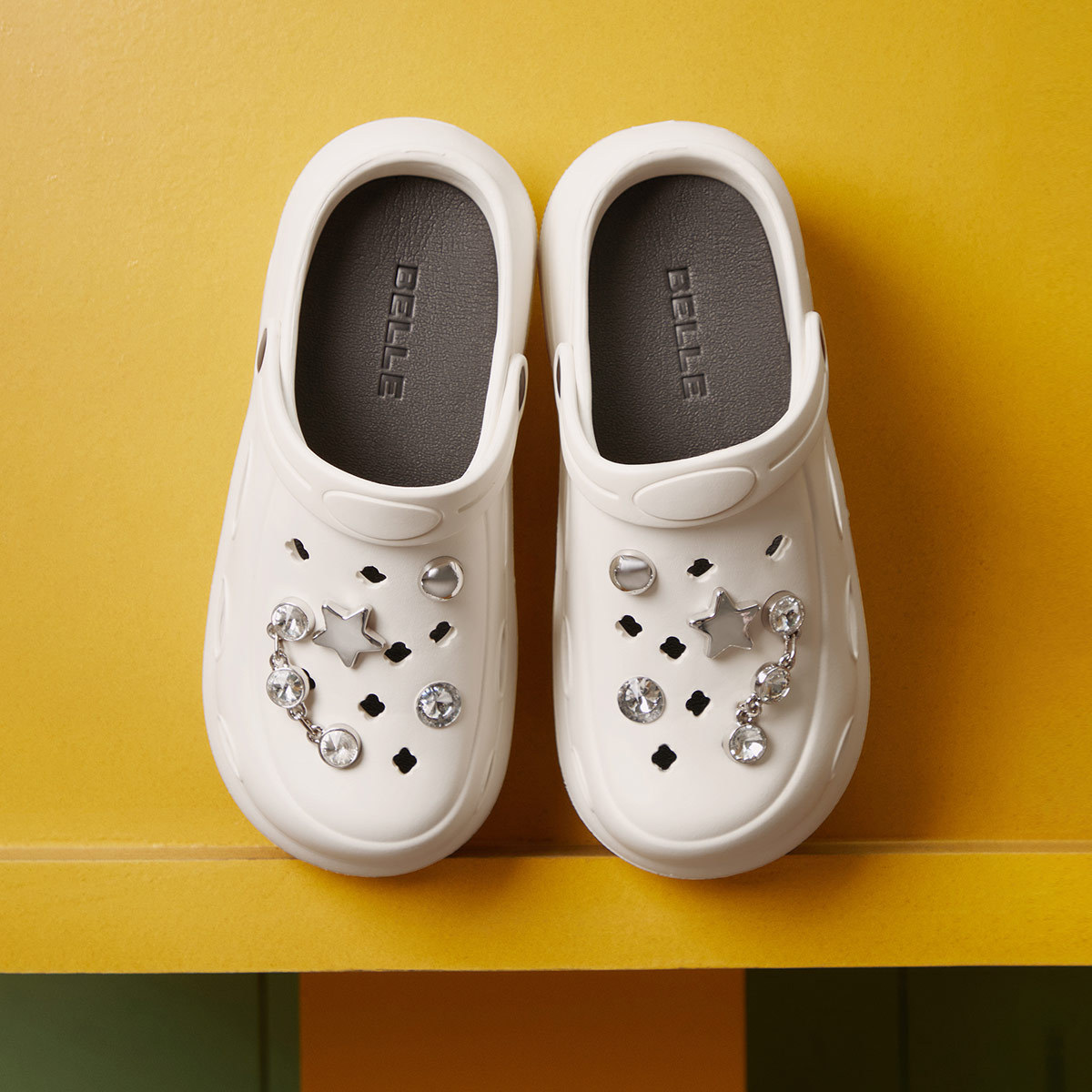 百丽厚底增高洞洞鞋女鞋子春夏水钻休闲拖鞋 526746