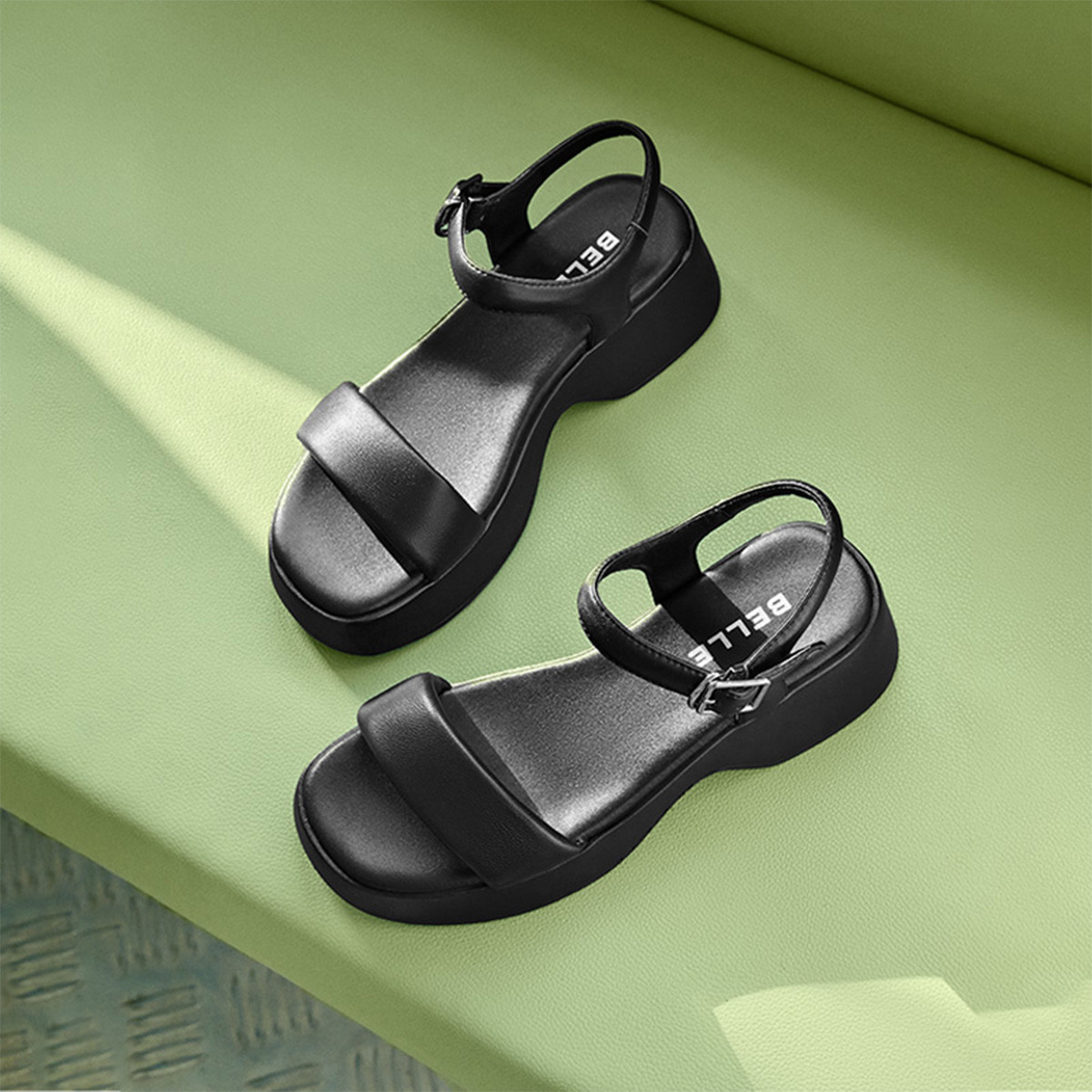 【爆款推荐】百丽一字带厚底凉鞋女款春夏鞋子休闲凉鞋 984474