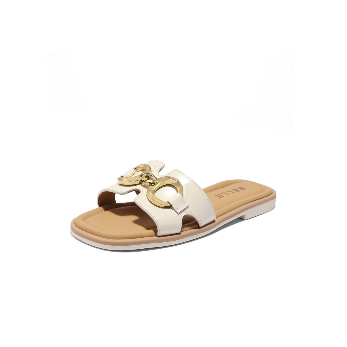 【爆款推荐】百丽金属扣一字拖女春夏鞋子法式可外穿平底拖鞋 928986