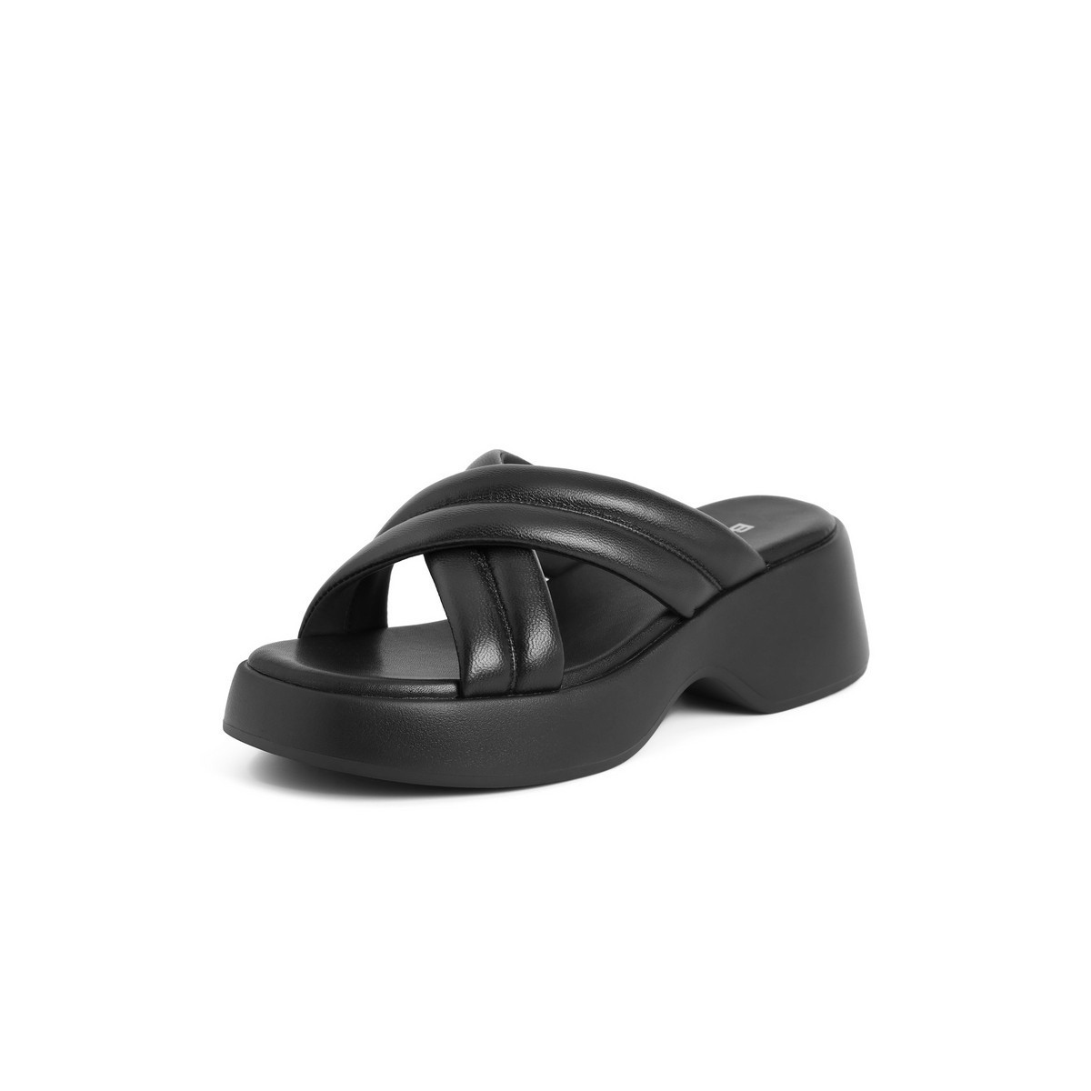 【尖货推荐】百丽简约休闲拖鞋羊皮女夏新厚底增高外穿一字拖 139546