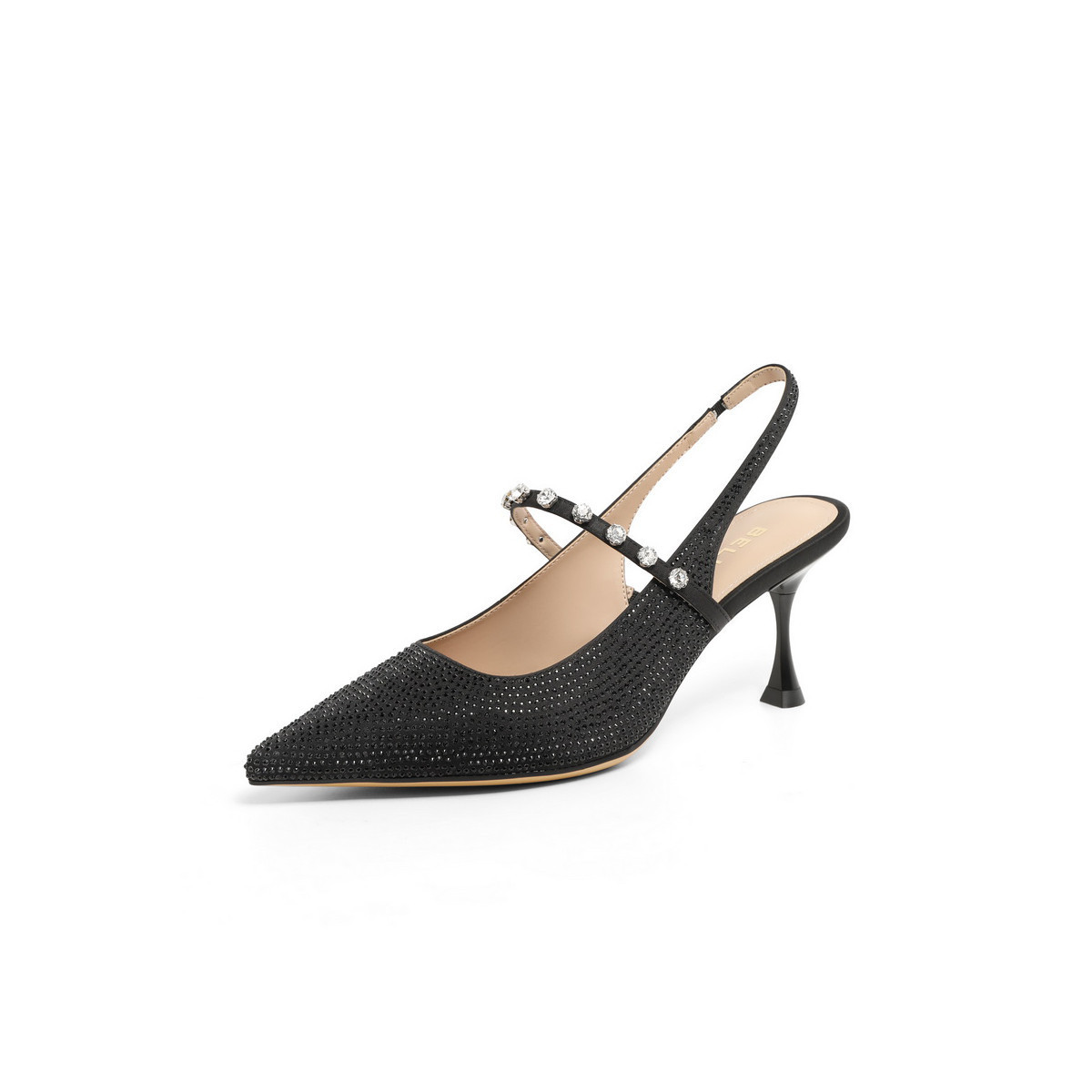 百丽女鞋子新中式包头凉鞋春夏水钻细高跟尖头凉鞋 604762