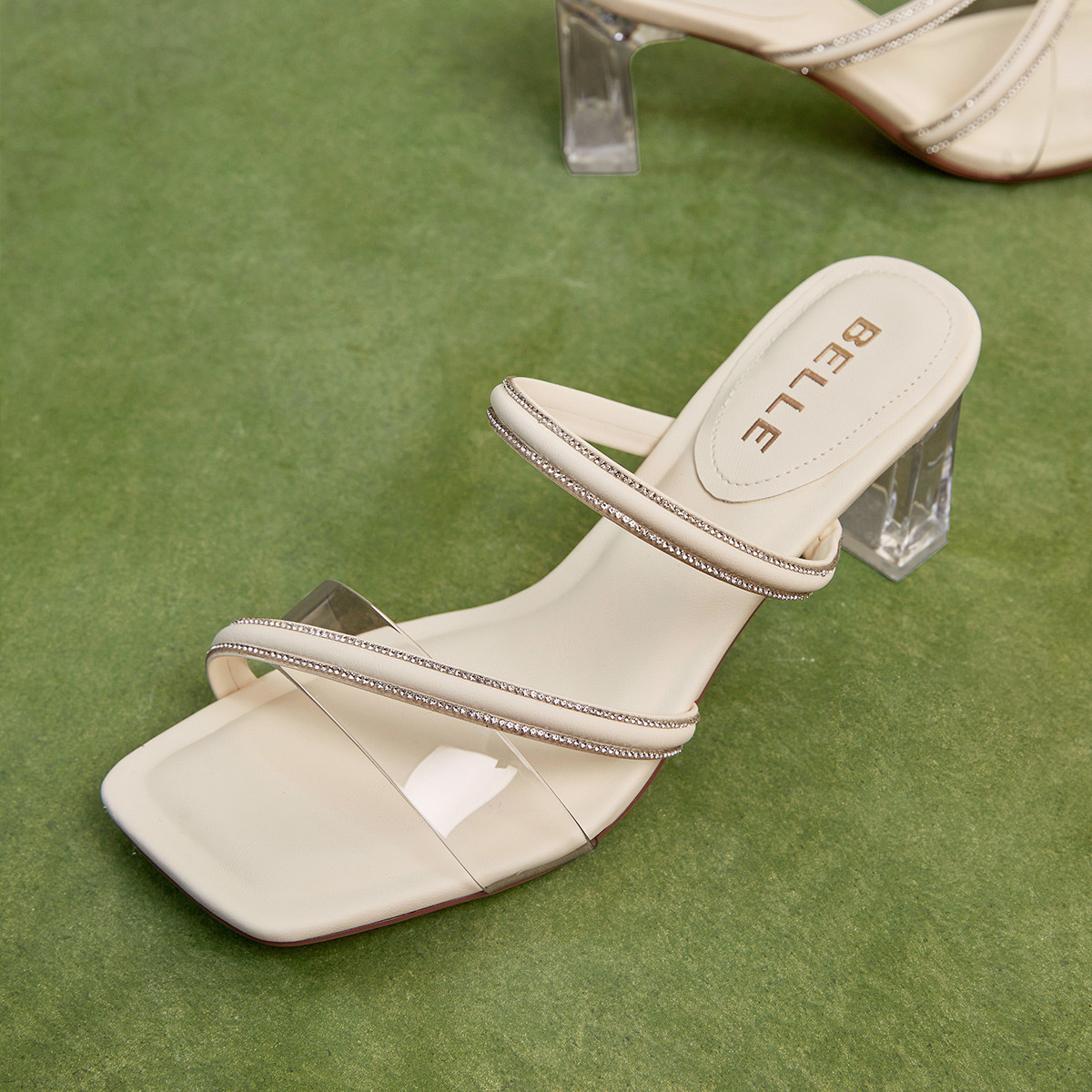 百丽女鞋子一字凉拖粗高跟鞋绝美凉鞋春夏外穿拖鞋 356890