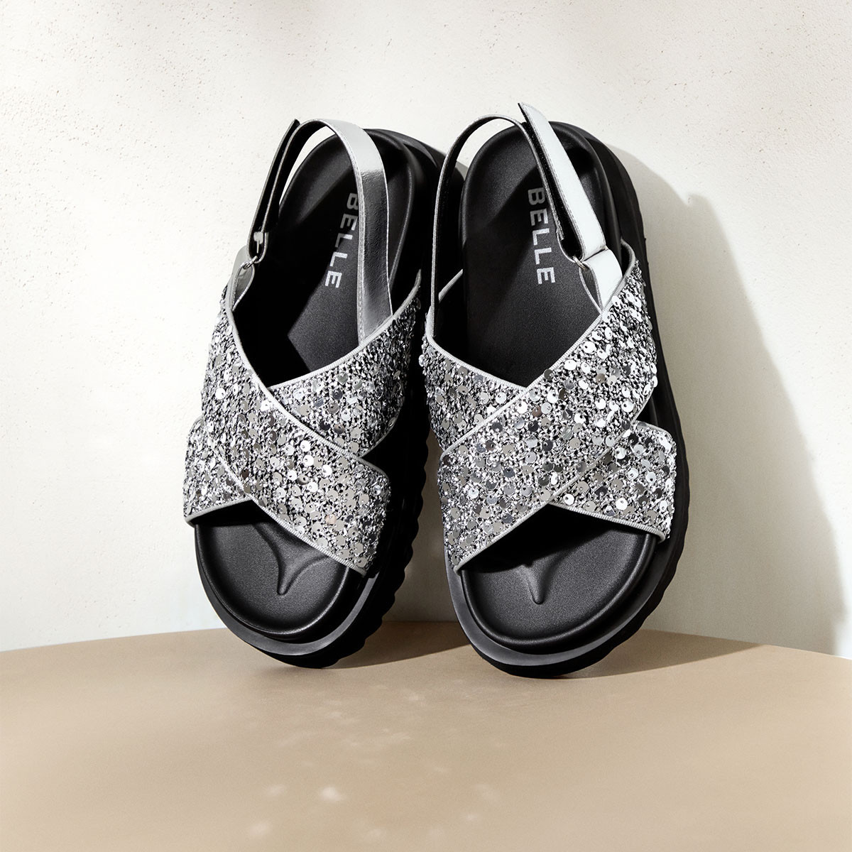百丽厚底银色凉鞋春夏女鞋子外穿凉拖户外凉鞋 718938