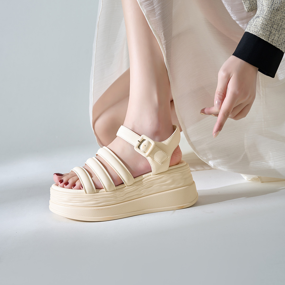 【气质纹理】百搭休闲女凉鞋厚底凉鞋夏季一字带凉鞋女轻便女凉鞋 912576