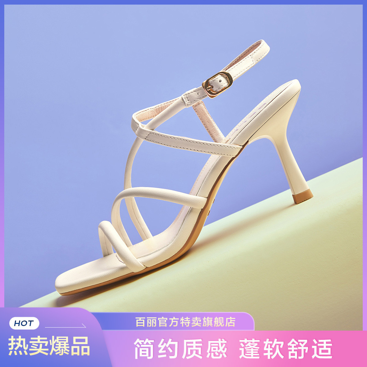 百丽缠绕带法式优雅凉鞋女款春夏绑带凉鞋细高跟鞋子 761626