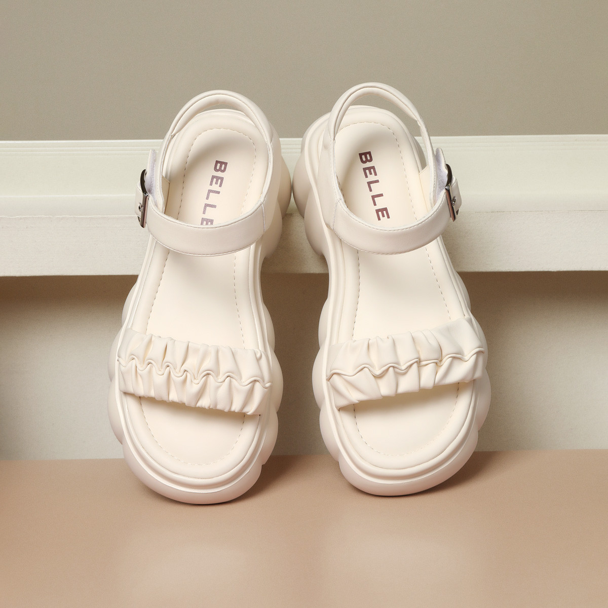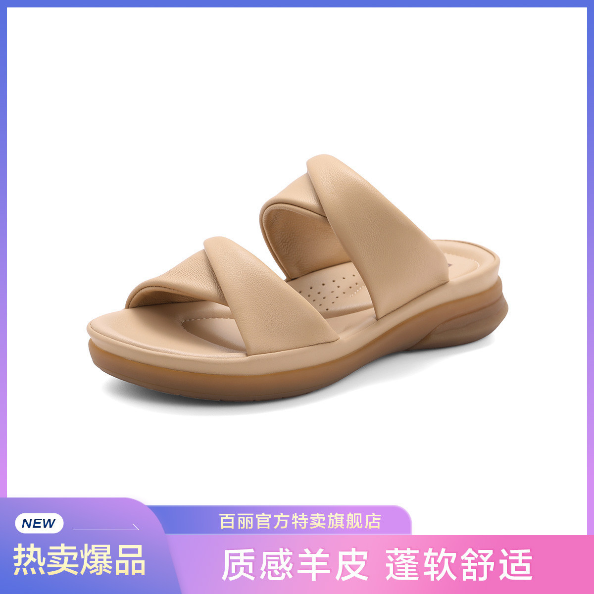百丽女鞋子软底可外穿休闲凉拖鞋舒适法式罗马凉鞋女 891930