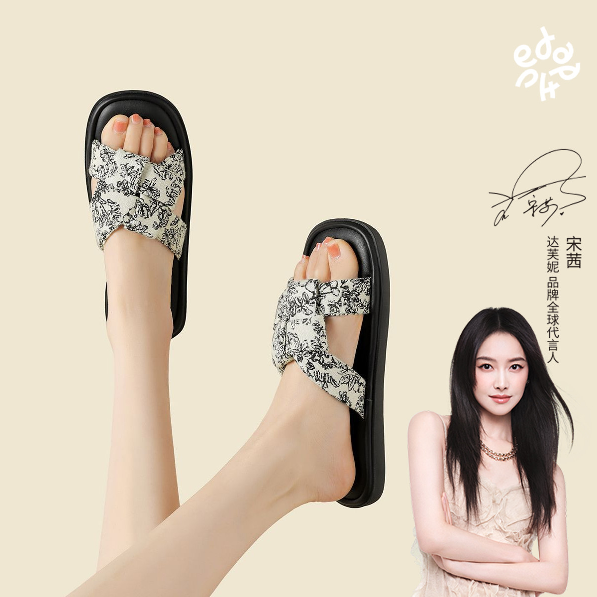 新中式印花女鞋夏季百搭时装拖鞋交叉编织外穿拖鞋居家拖鞋沙滩鞋 670039