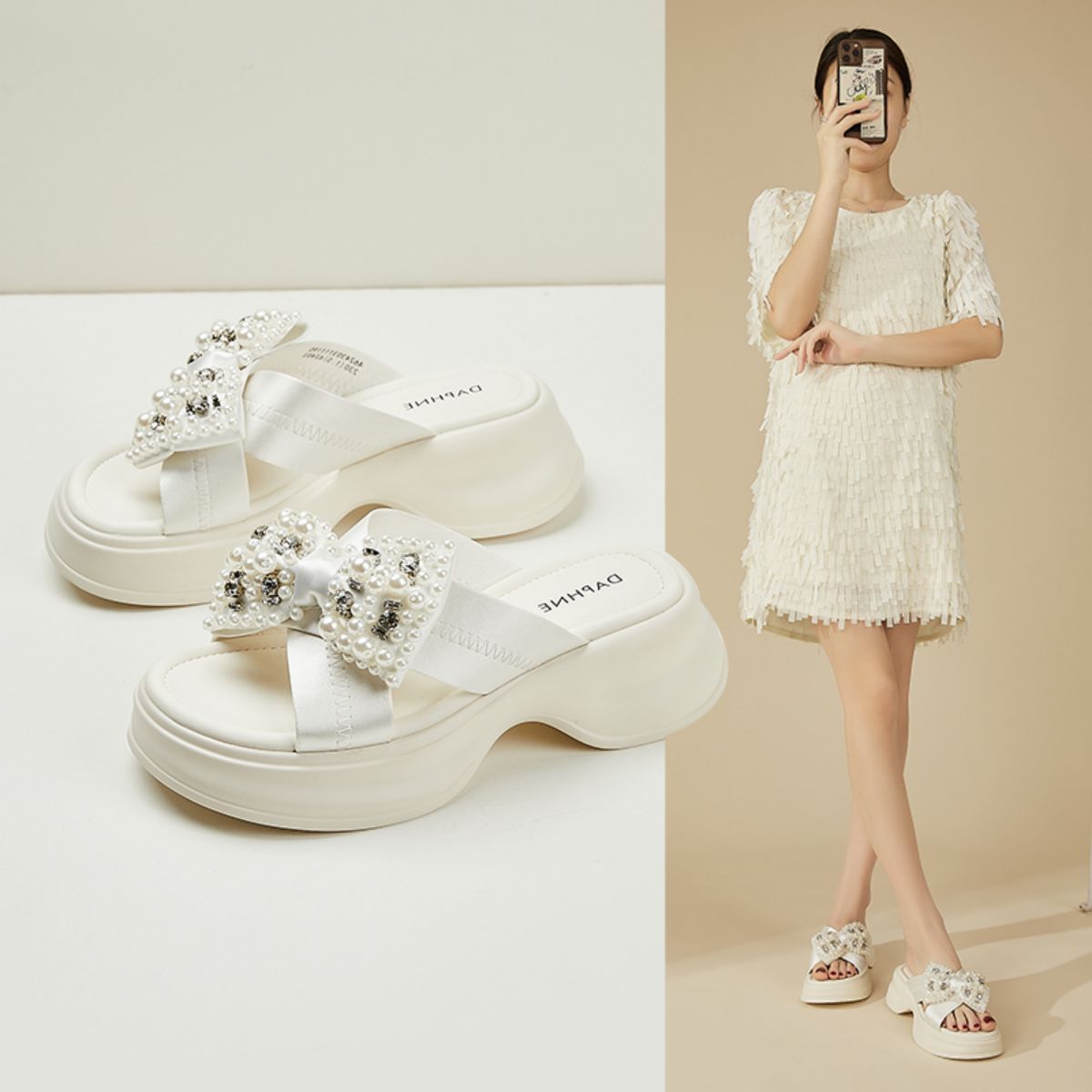 【水钻蝴蝶结】夏季爆款珍珠厚底拖鞋女外穿精致高级感凉拖鞋 841879