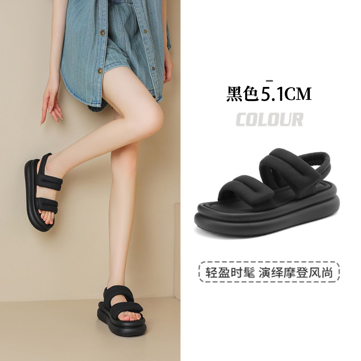 【气质纹理】百搭休闲女凉鞋厚底凉鞋夏季一字带凉鞋女轻便女凉鞋 912576