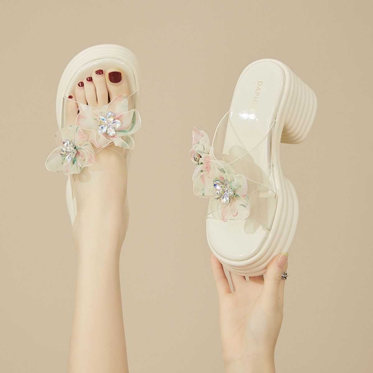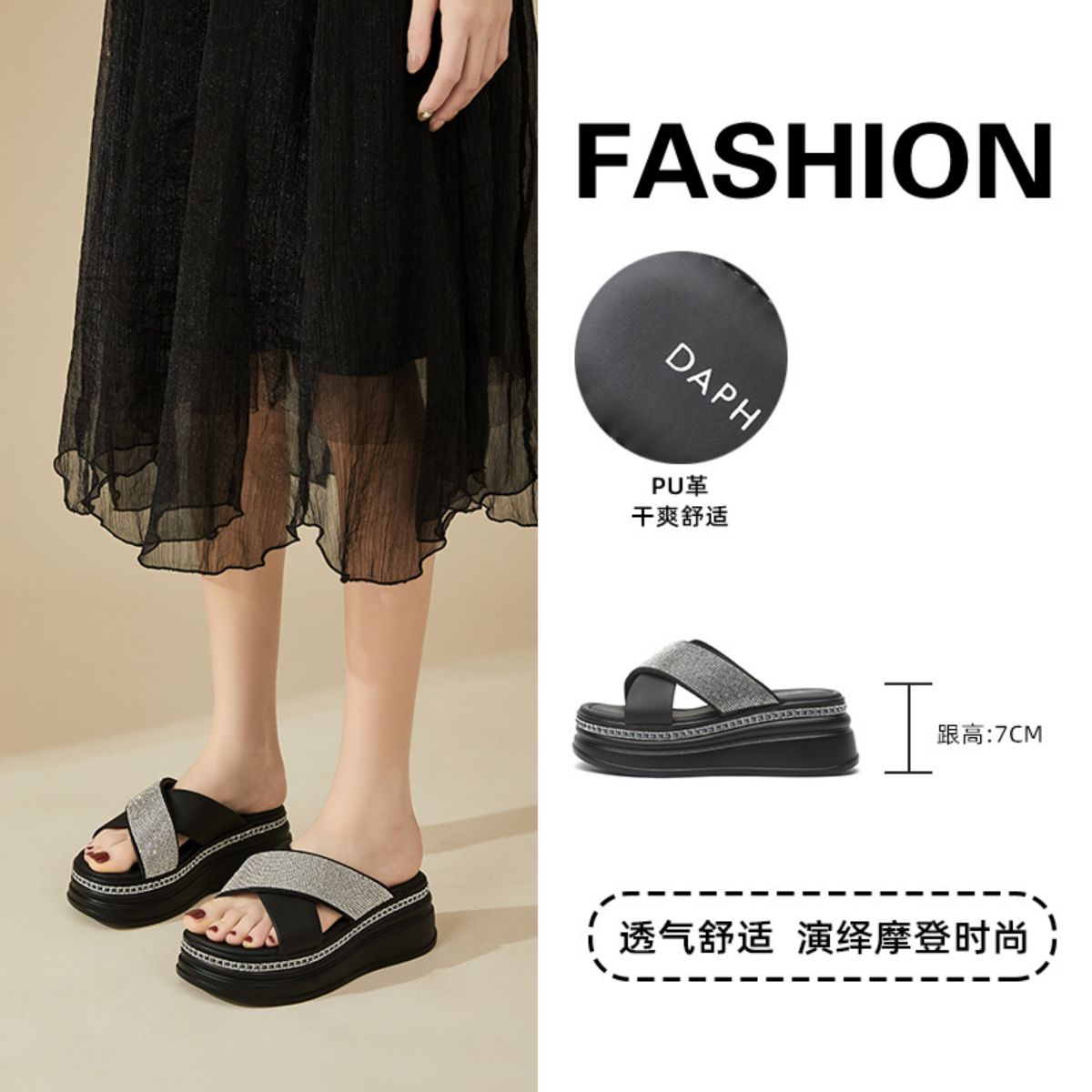 【厚底增高】夏季简约拖鞋女水钻一字带通勤外穿百搭凉拖女鞋 531415