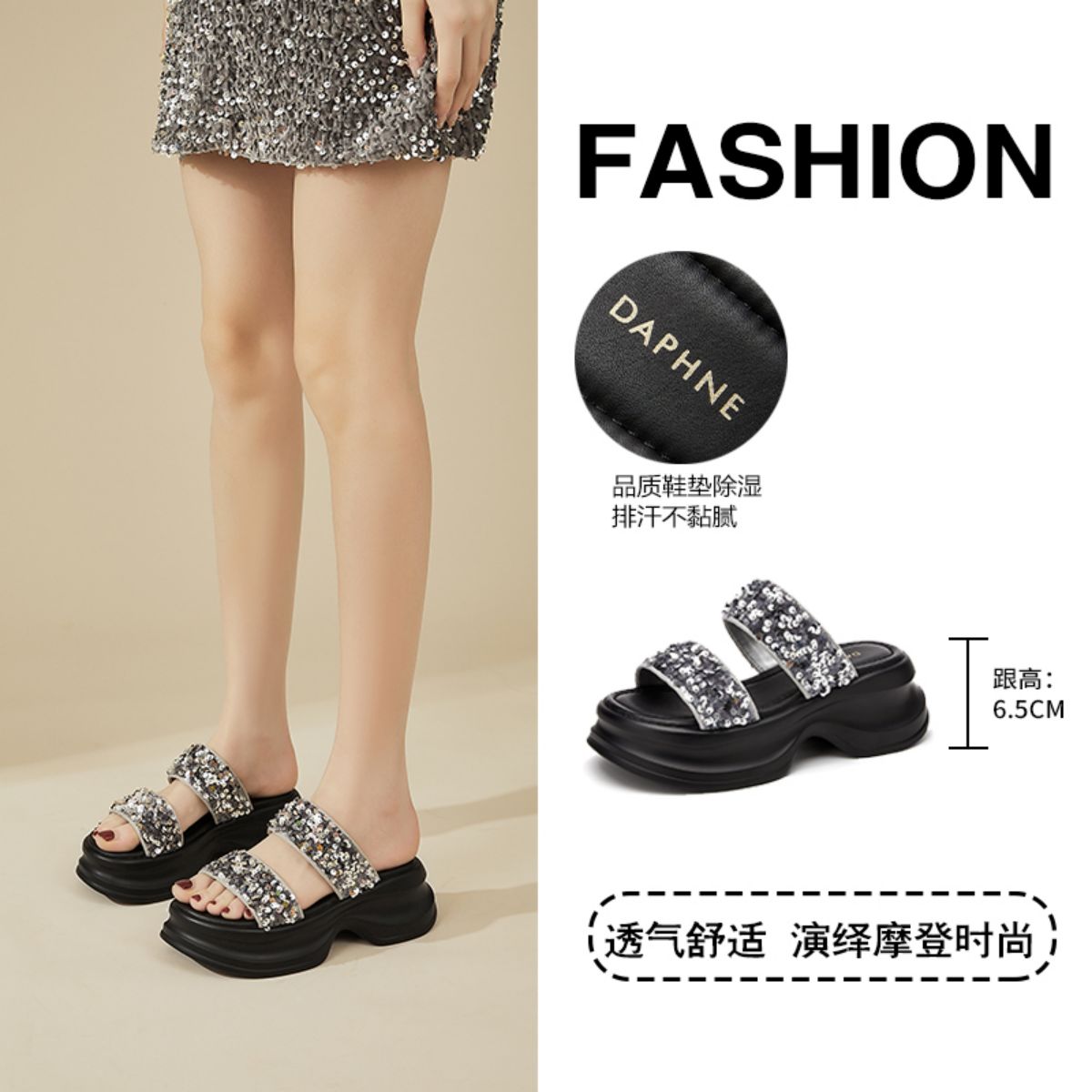 【厚底增高】爆款夏季运动凉鞋女厚底沙滩凉鞋亮片一字带凉拖鞋 189975