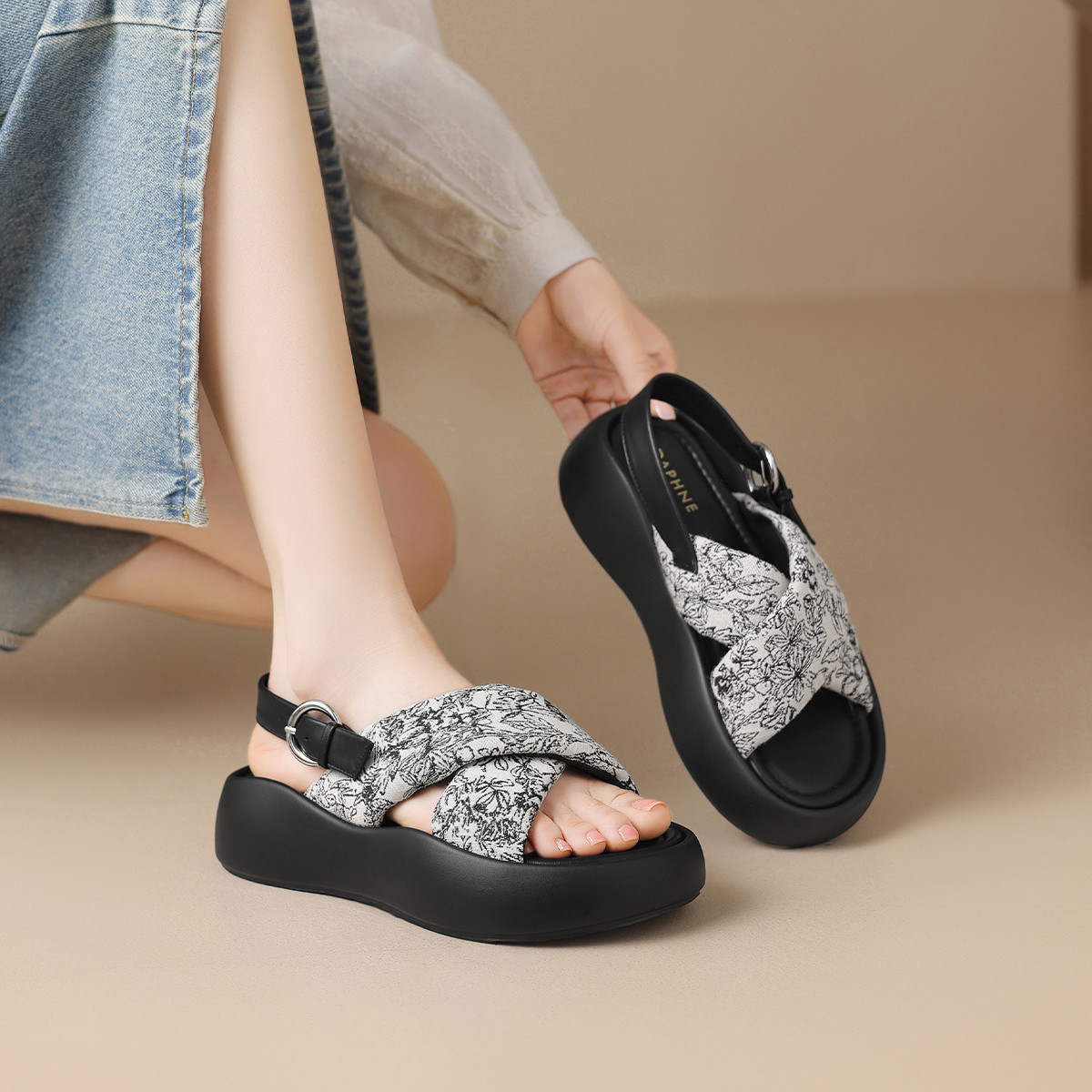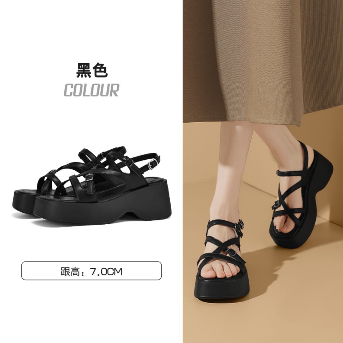 厚底沙滩女凉鞋夏季交叉一字带凉鞋百搭运动女凉鞋 094938