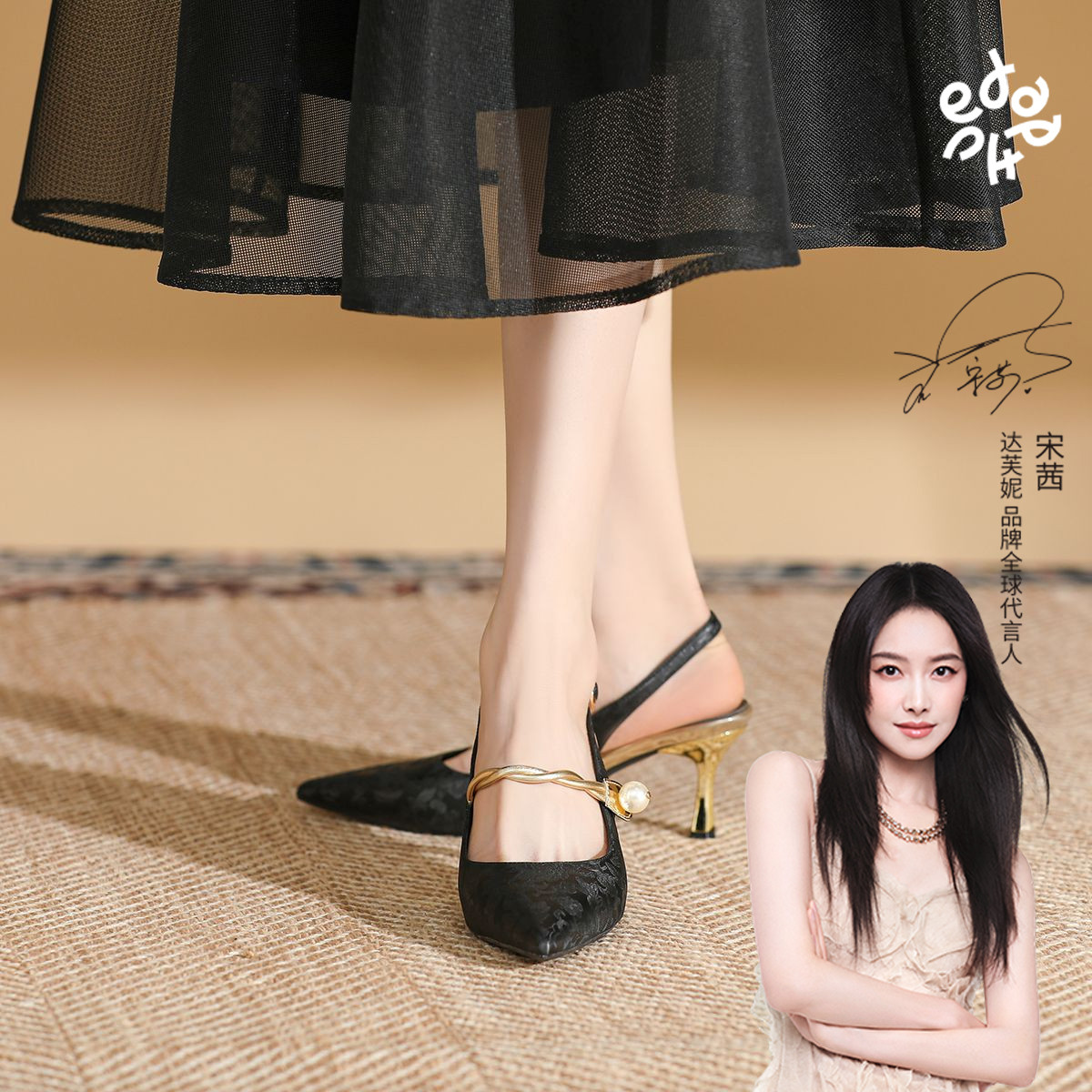 夏季新中式国风后空凉鞋女一字带高跟鞋轻便细跟时尚通勤鞋时装鞋 236055