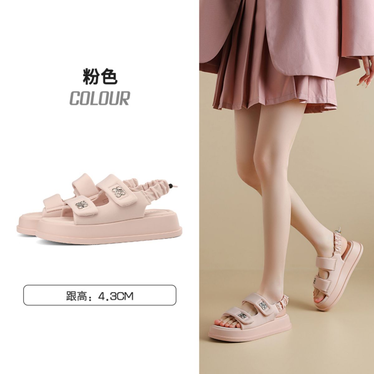 【时尚一字带凉鞋】百搭松紧后空凉鞋女夏季厚底运动凉鞋沙滩鞋女 414359