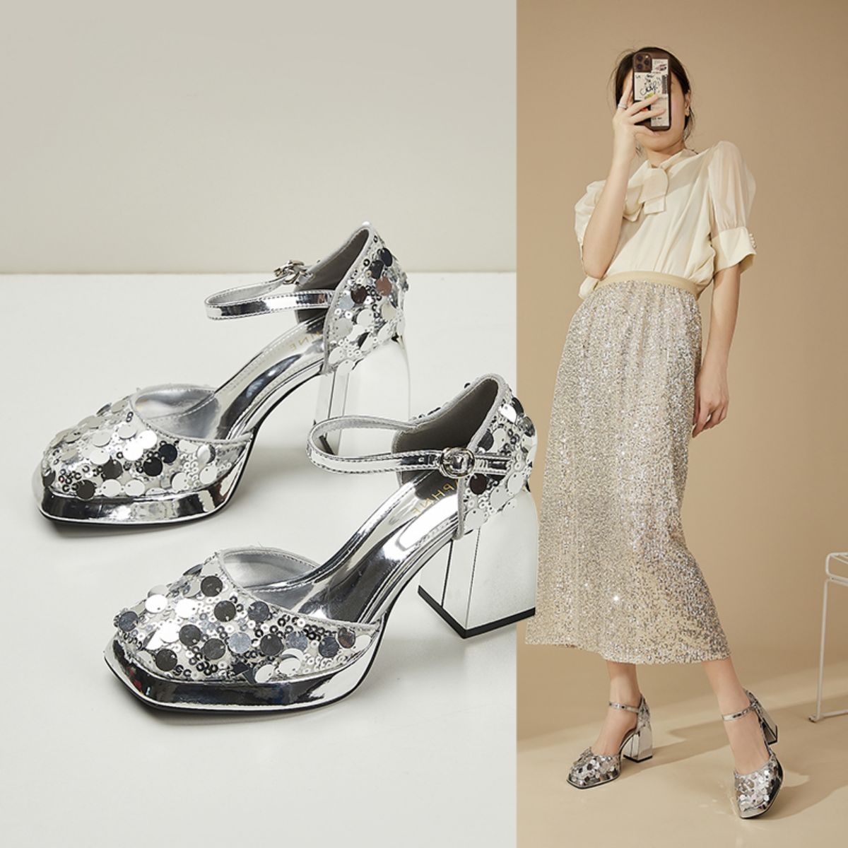 【时装亮片】25新款夏季时装单鞋女中空凉鞋女高跟鞋外穿女鞋 353943