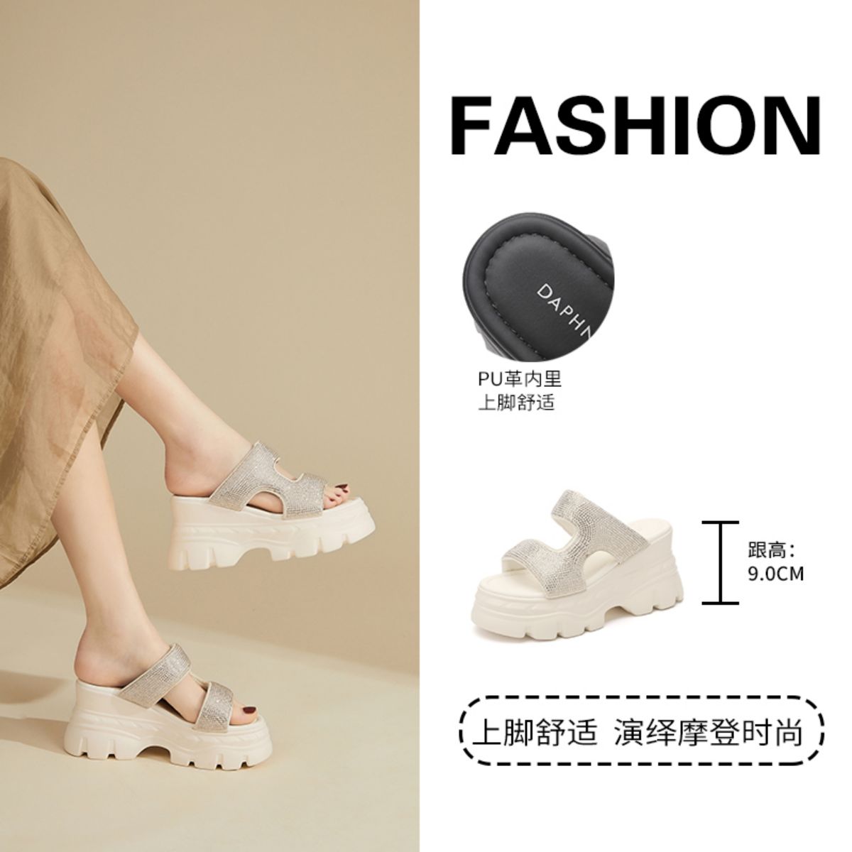 【秒增9CM】夏季运动拖鞋女外穿百搭厚底水钻潮流凉拖外穿 360983