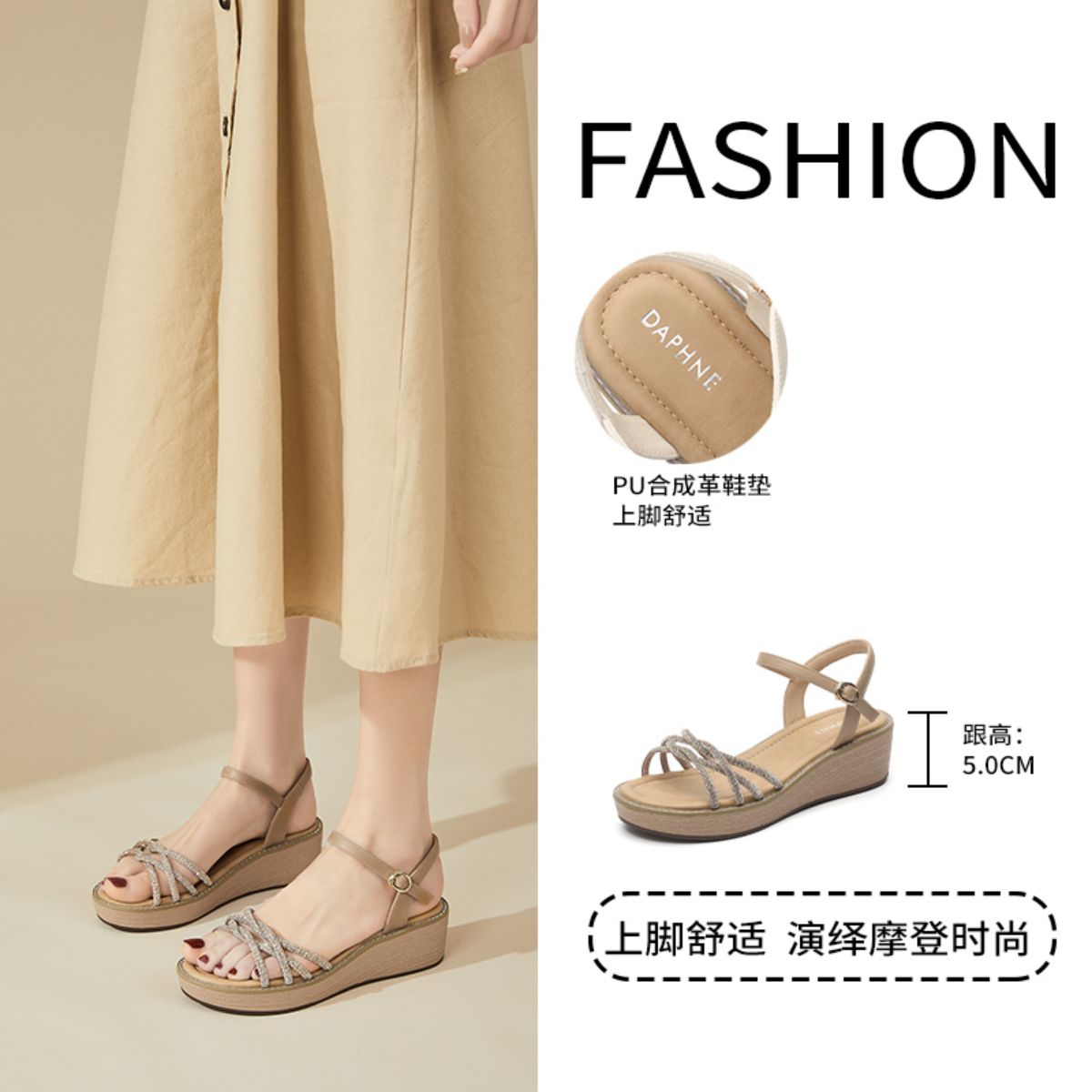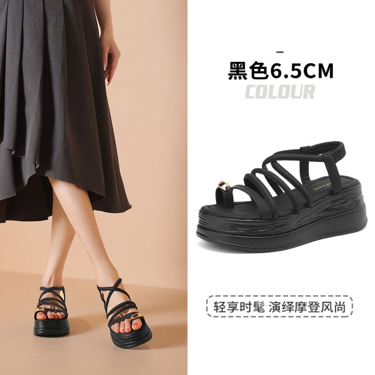 夏季一字带凉鞋韩系百搭罗马凉鞋女中空凉鞋厚底增高舒适时装凉鞋 629975