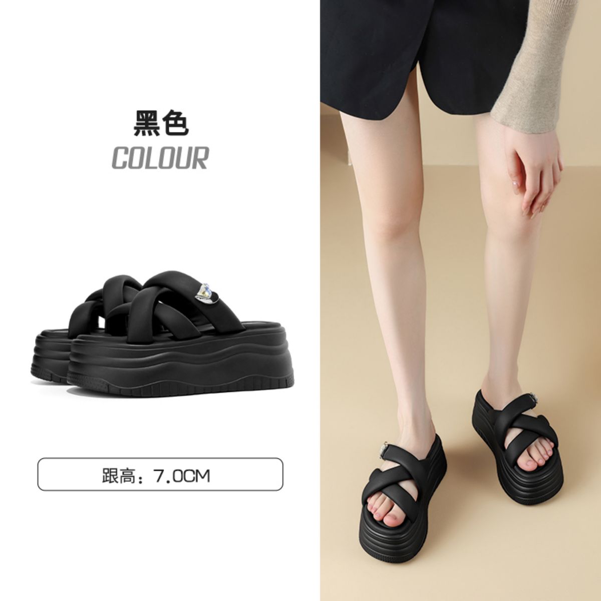 夏季增高厚底拖鞋女外穿凉拖鞋交叉带拖鞋松糕底罗马凉鞋软底女鞋 632215