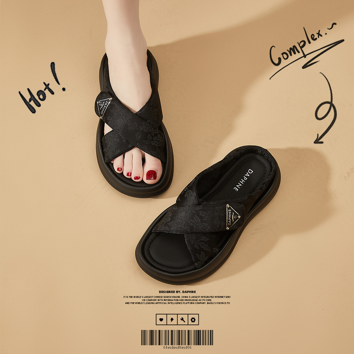 2025年夏季复古花纹交叉高级设计感拖鞋厚底金装饰国风女鞋 494682