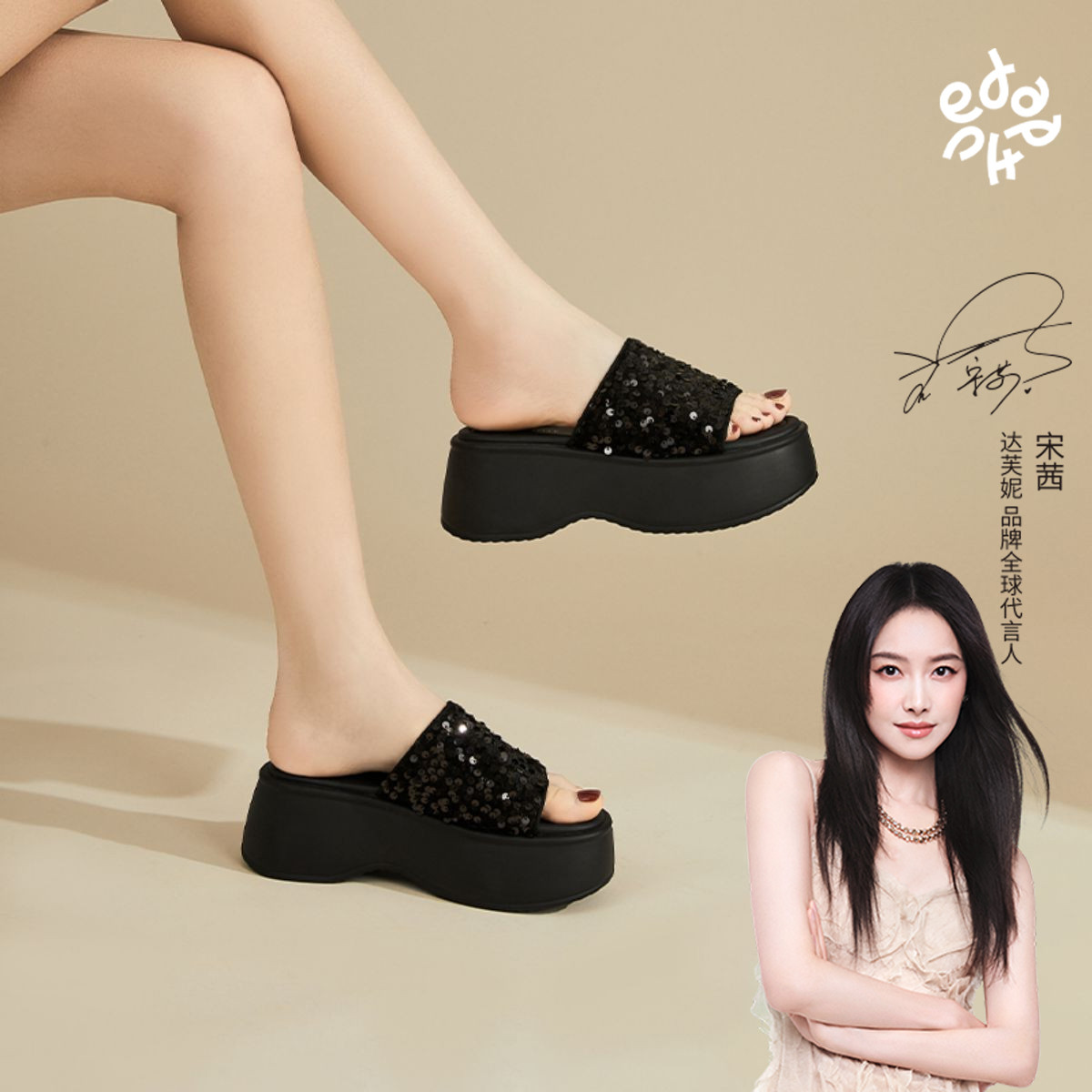 【秒增9CM】夏季爆款气质拖鞋女亮片居家松糕鞋外穿凉拖鞋女 539607