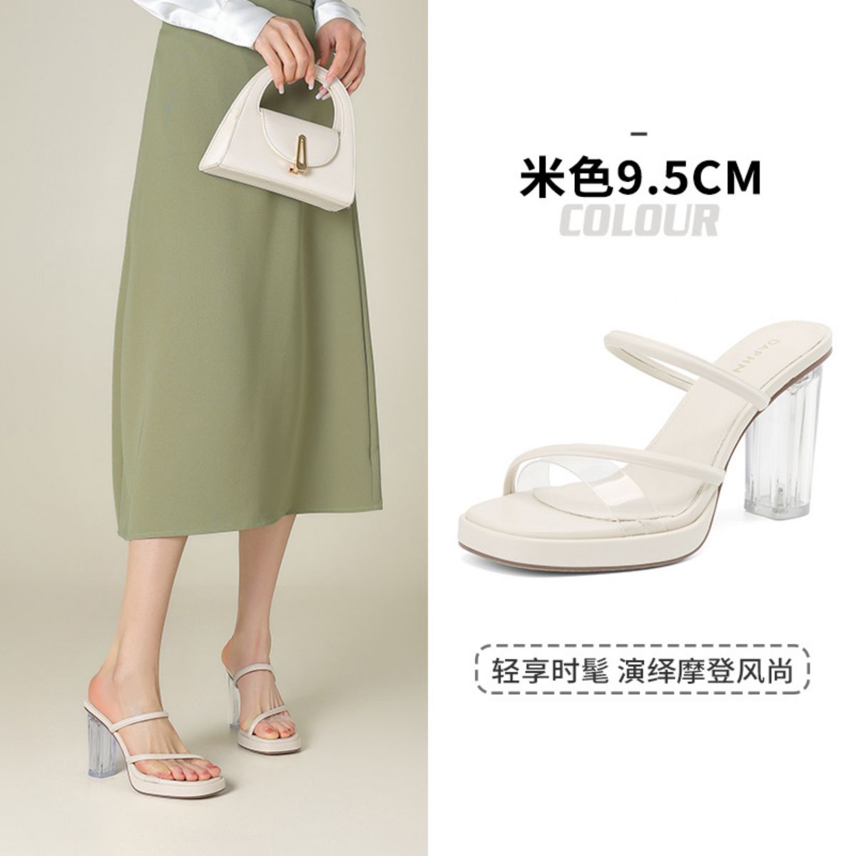 【透明鞋跟】夏季粗跟凉鞋百搭一字带拖鞋法式舒适女士凉鞋女鞋 044314