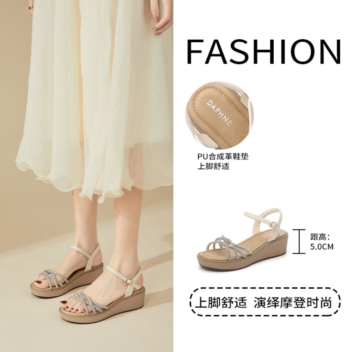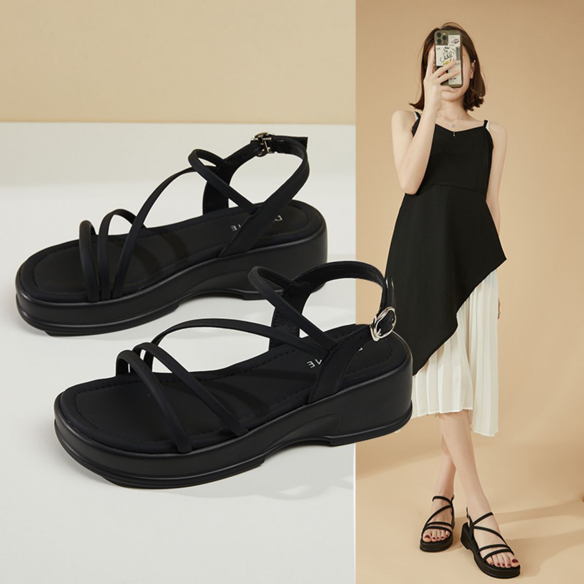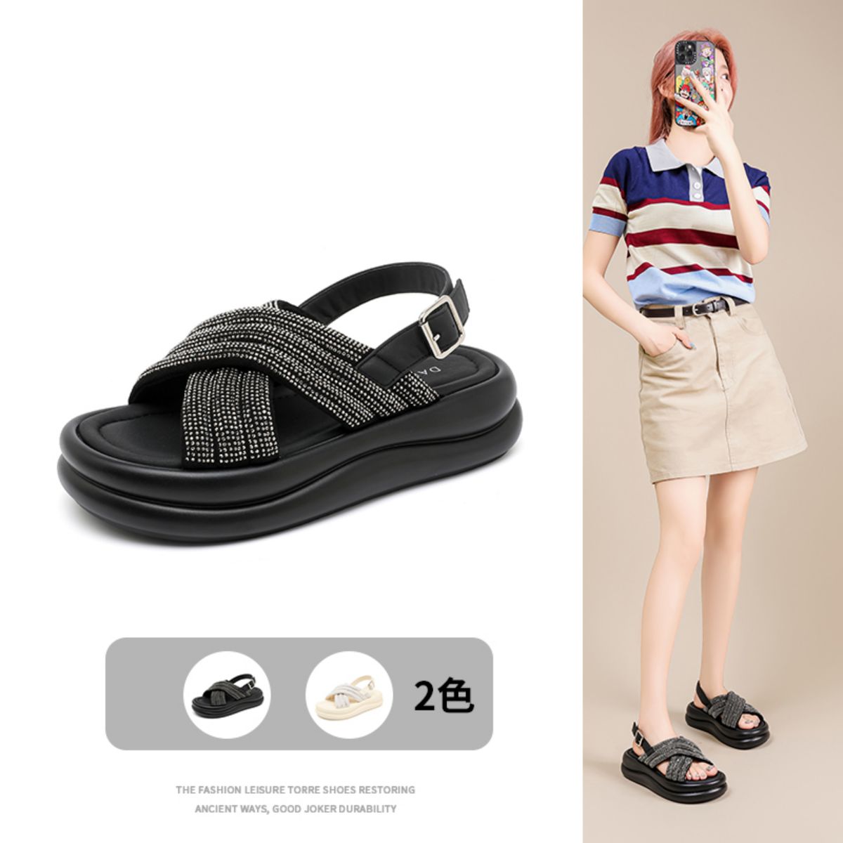 【厚底舒适】夏季一字带厚底凉鞋女水钻露趾女鞋罗马单鞋外穿 041431