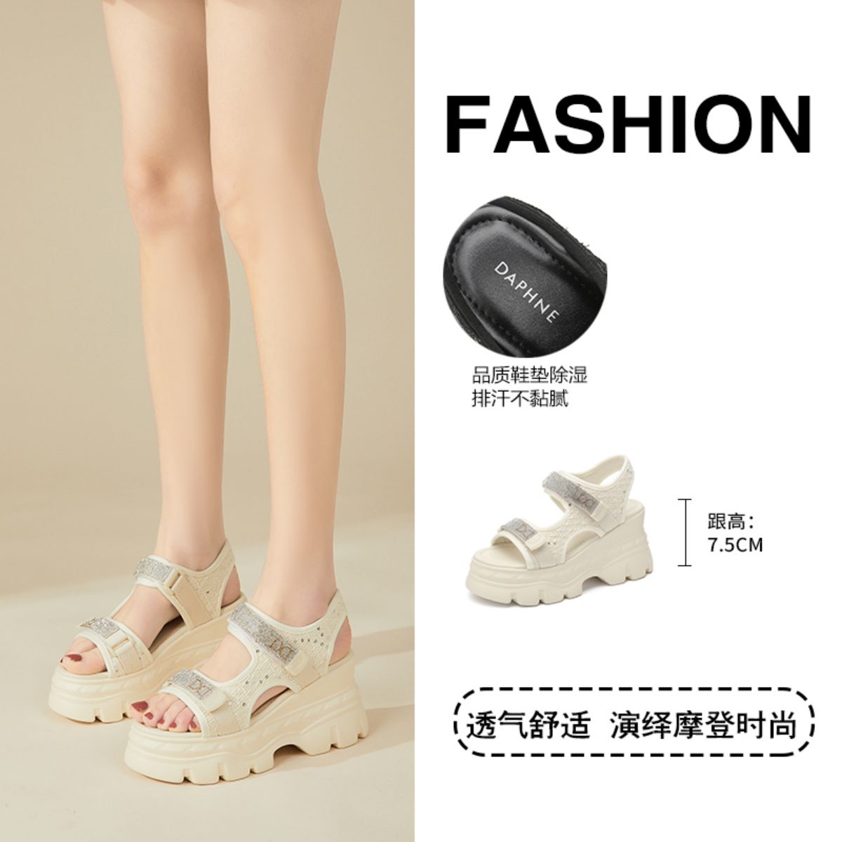 【秒增7.5CM】夏季运动凉鞋女款休闲魔术贴一字带凉鞋女鞋 637911
