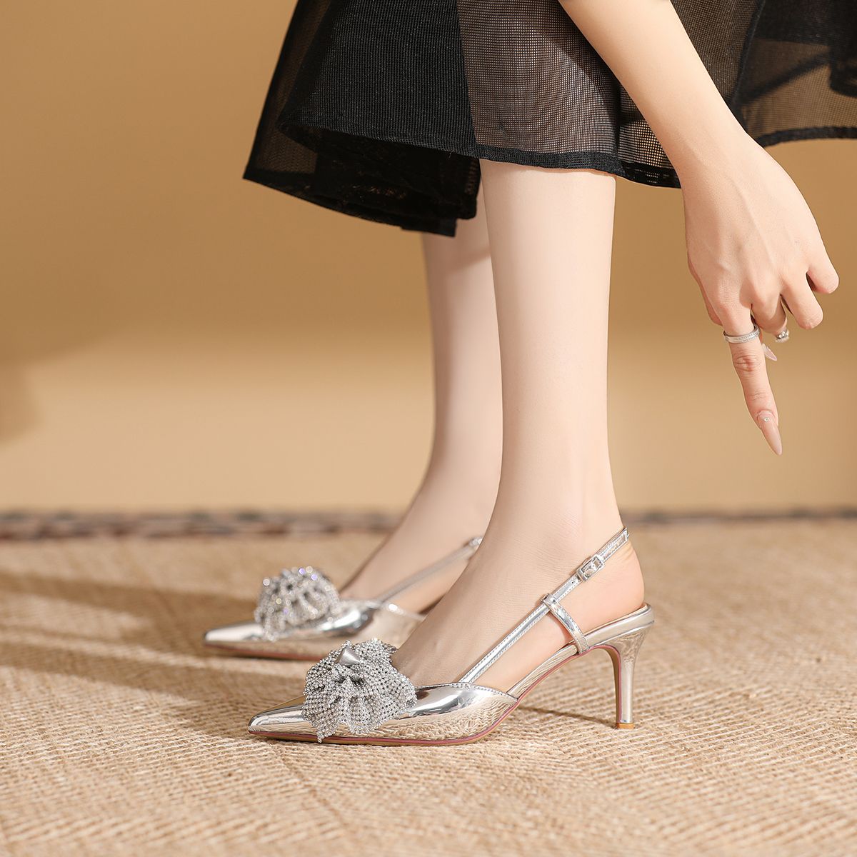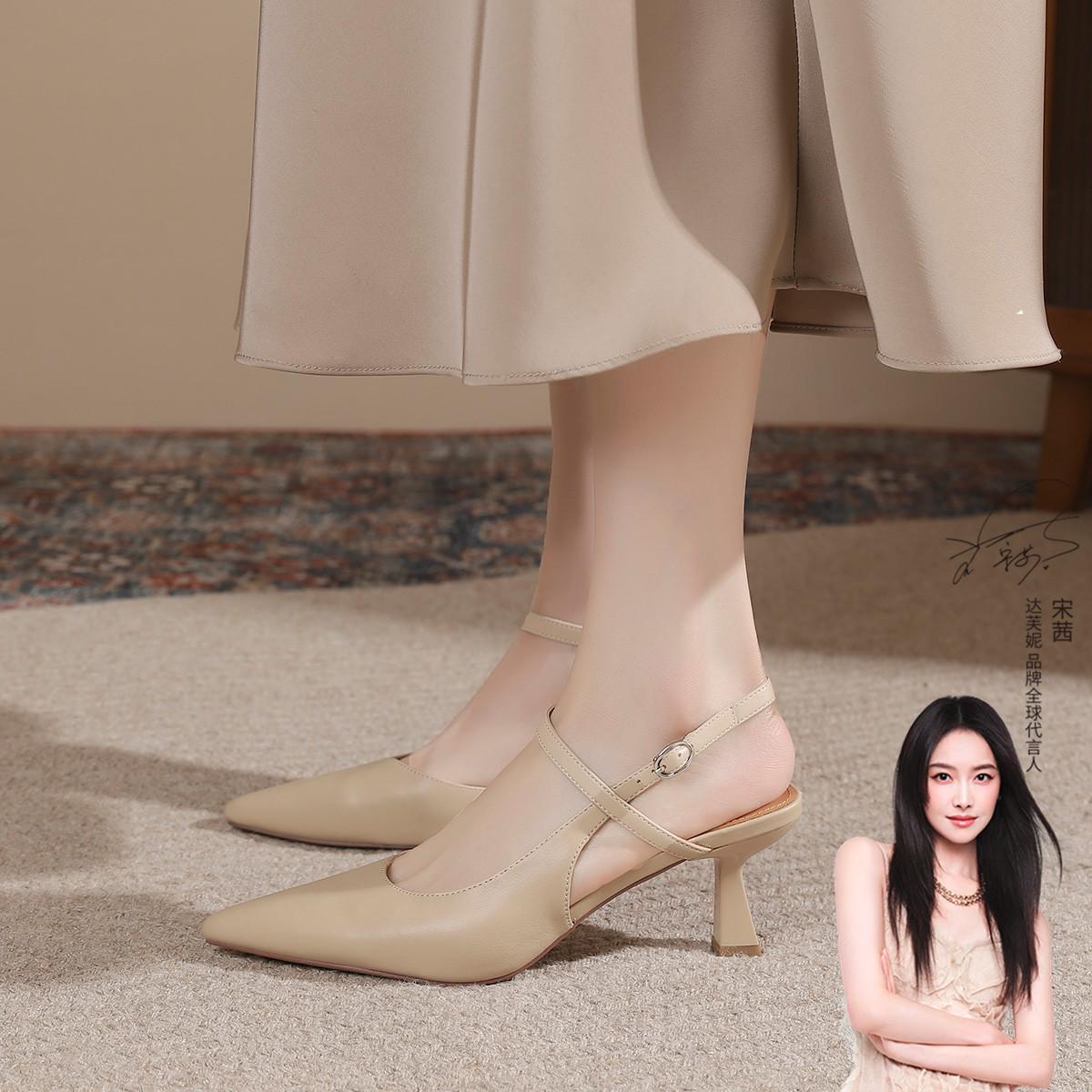 包头凉鞋女夏季百搭时尚高跟鞋尖头后空凉鞋女鞋气质通勤女鞋 317338