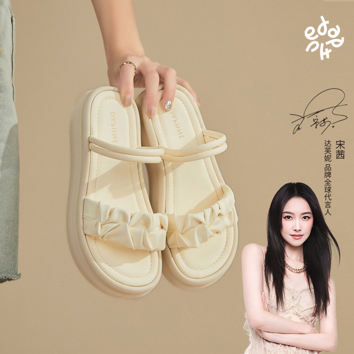 【褶皱设计】夏凉拖鞋女士外穿厚底半拖运动拖鞋女鞋一字带凉鞋女 564183