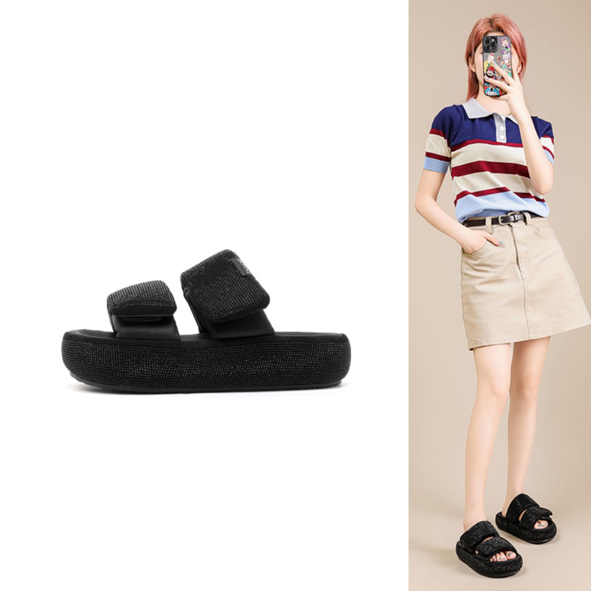 【厚底增高】爆款夏季运动凉鞋女厚底沙滩凉鞋亮片一字带凉拖鞋 189975