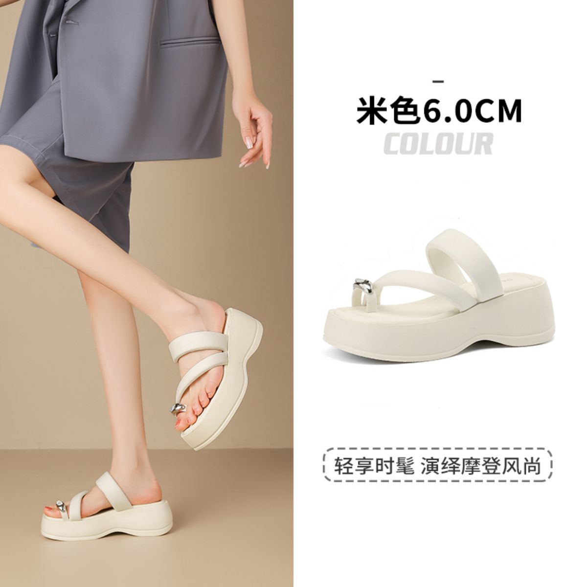 夏季厚底拖鞋女外穿拖鞋凉拖套趾凉鞋沙滩拖鞋一脚蹬软底舒适拖鞋 203991