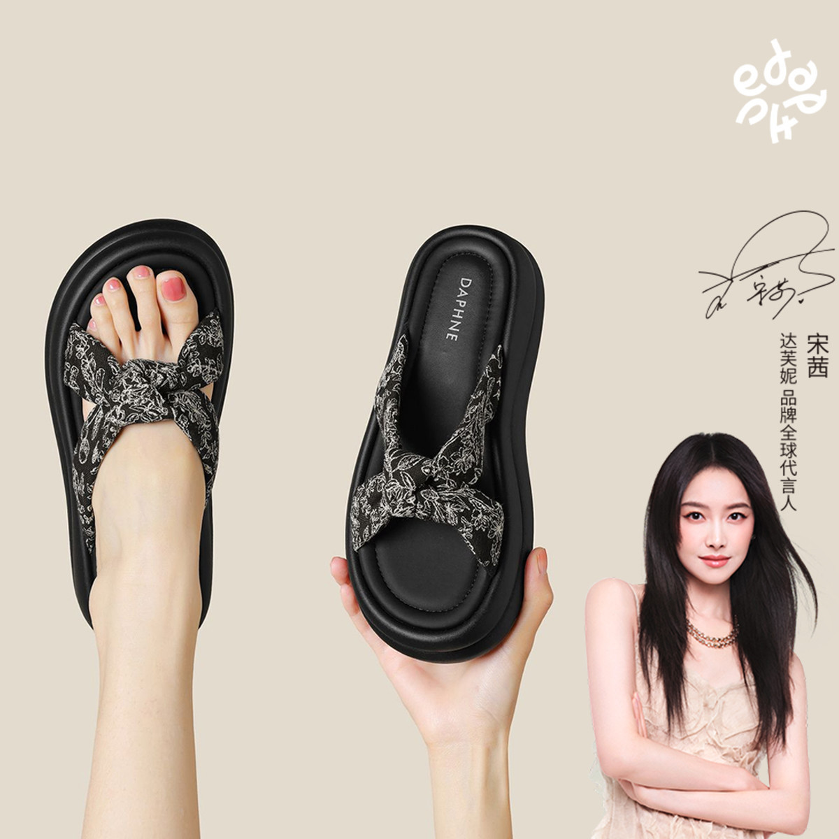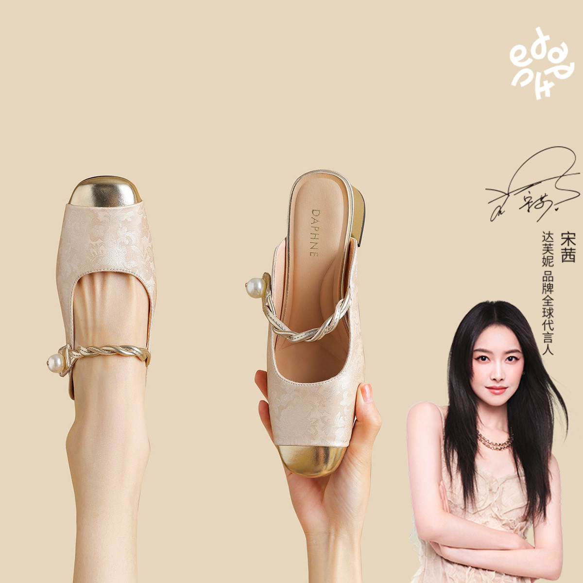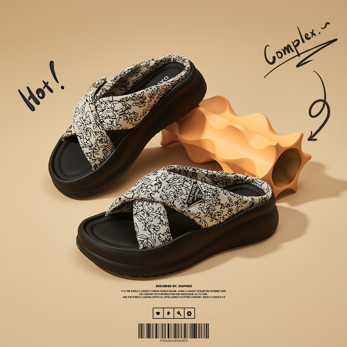 2025年夏季复古花纹交叉高级设计感拖鞋厚底金装饰国风女鞋 392282