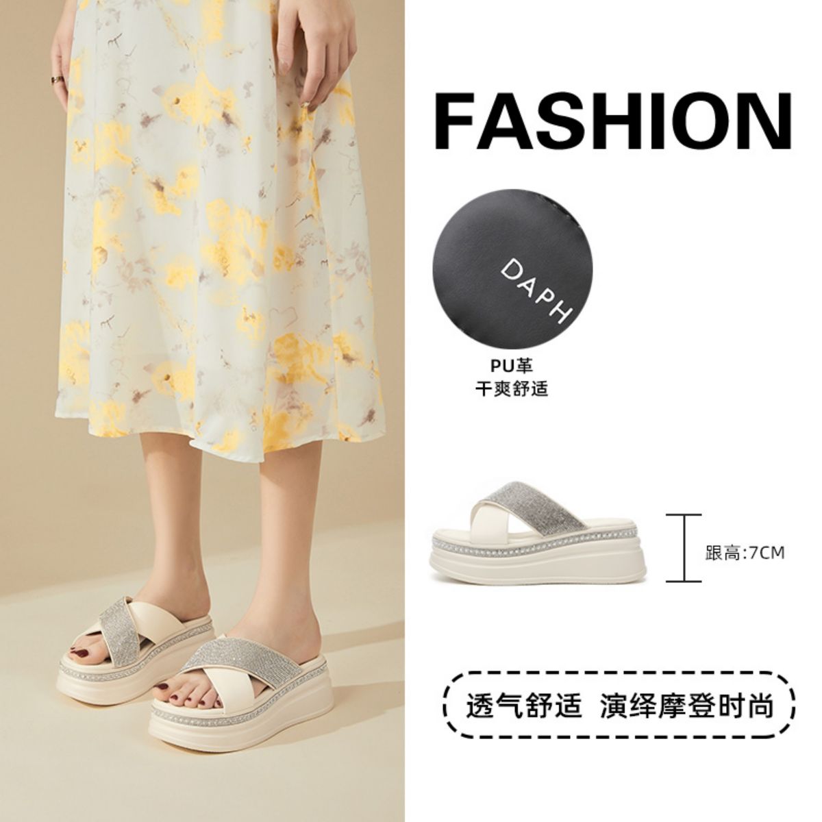 【厚底增高】夏季简约拖鞋女水钻一字带通勤外穿百搭凉拖女鞋 482263