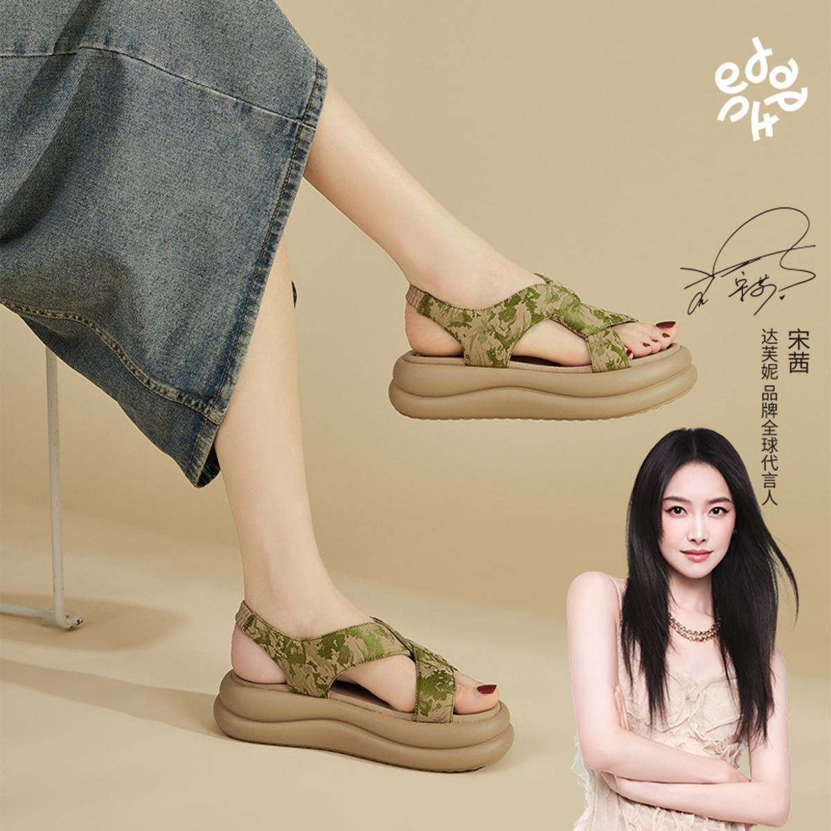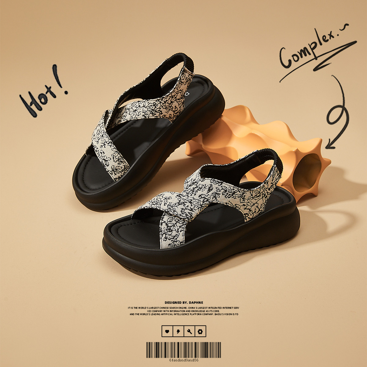 2025夏季复古风花纹国风松紧带设计厚底凉鞋时尚百搭潮流女鞋 276058