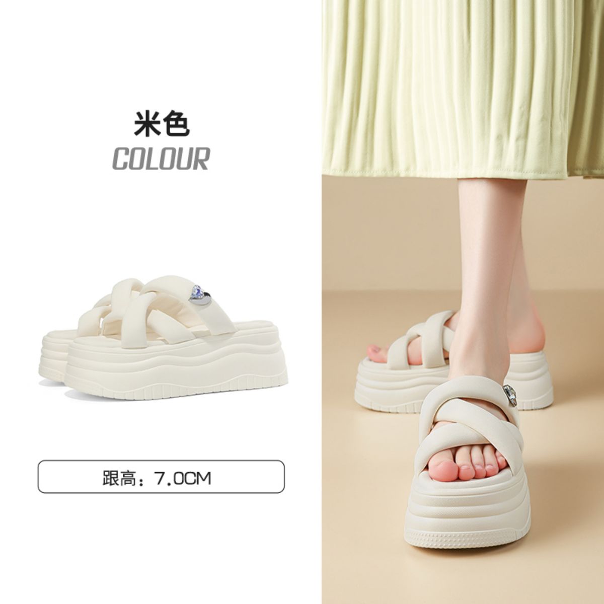 夏季增高厚底拖鞋女外穿凉拖鞋交叉带拖鞋松糕底罗马凉鞋软底女鞋 784087