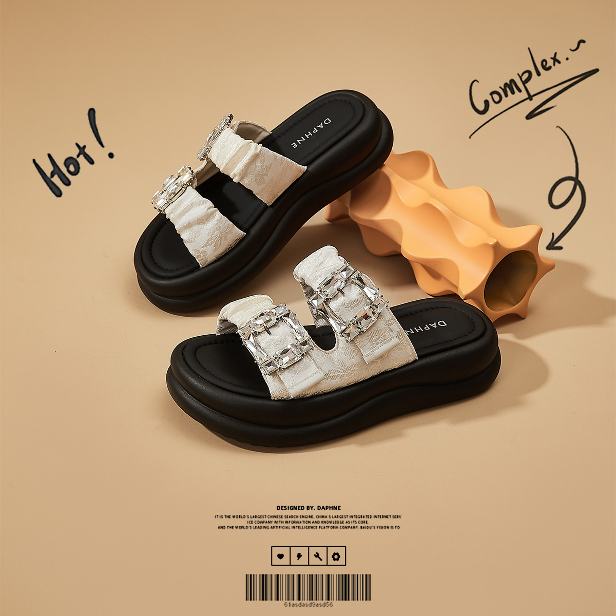 2025夏季复古花纹设计国风拖鞋闪耀水钻厚底气质时尚高级女鞋 118746