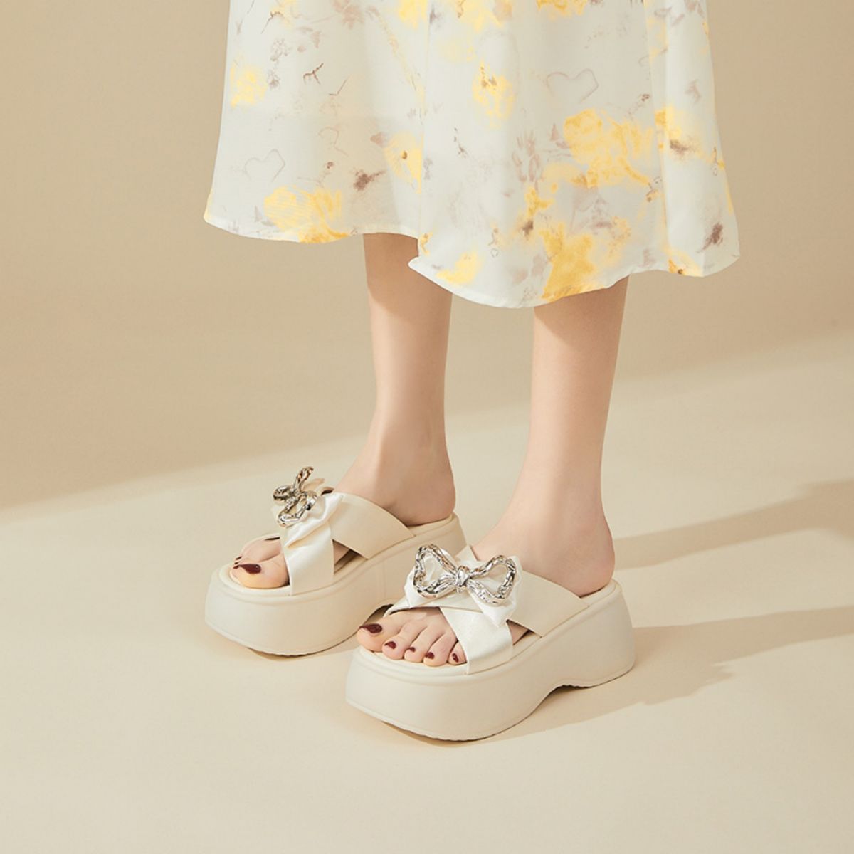 【秒增7CM】夏季爆款厚底外穿拖鞋女款蝴蝶结半拖时装凉鞋 012759