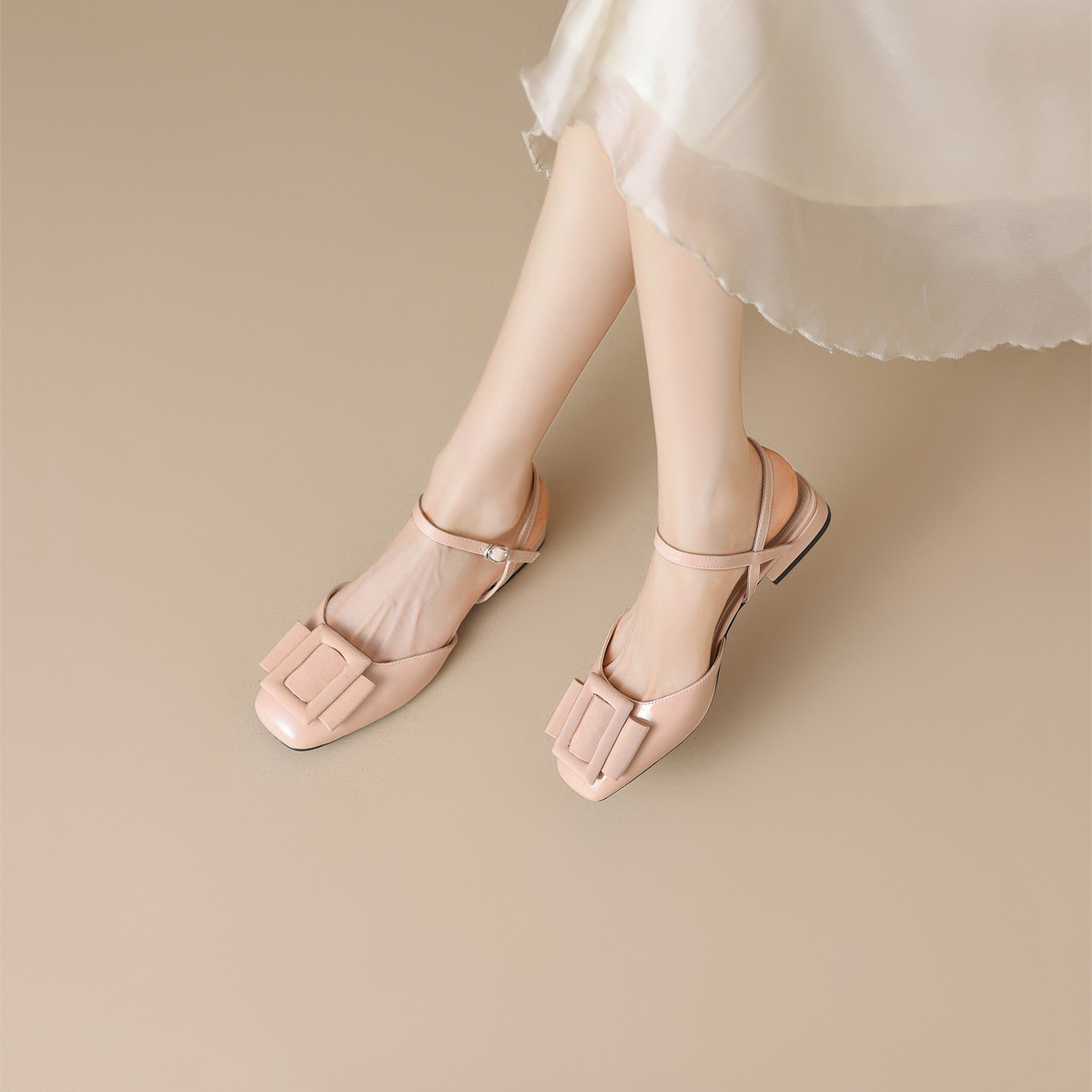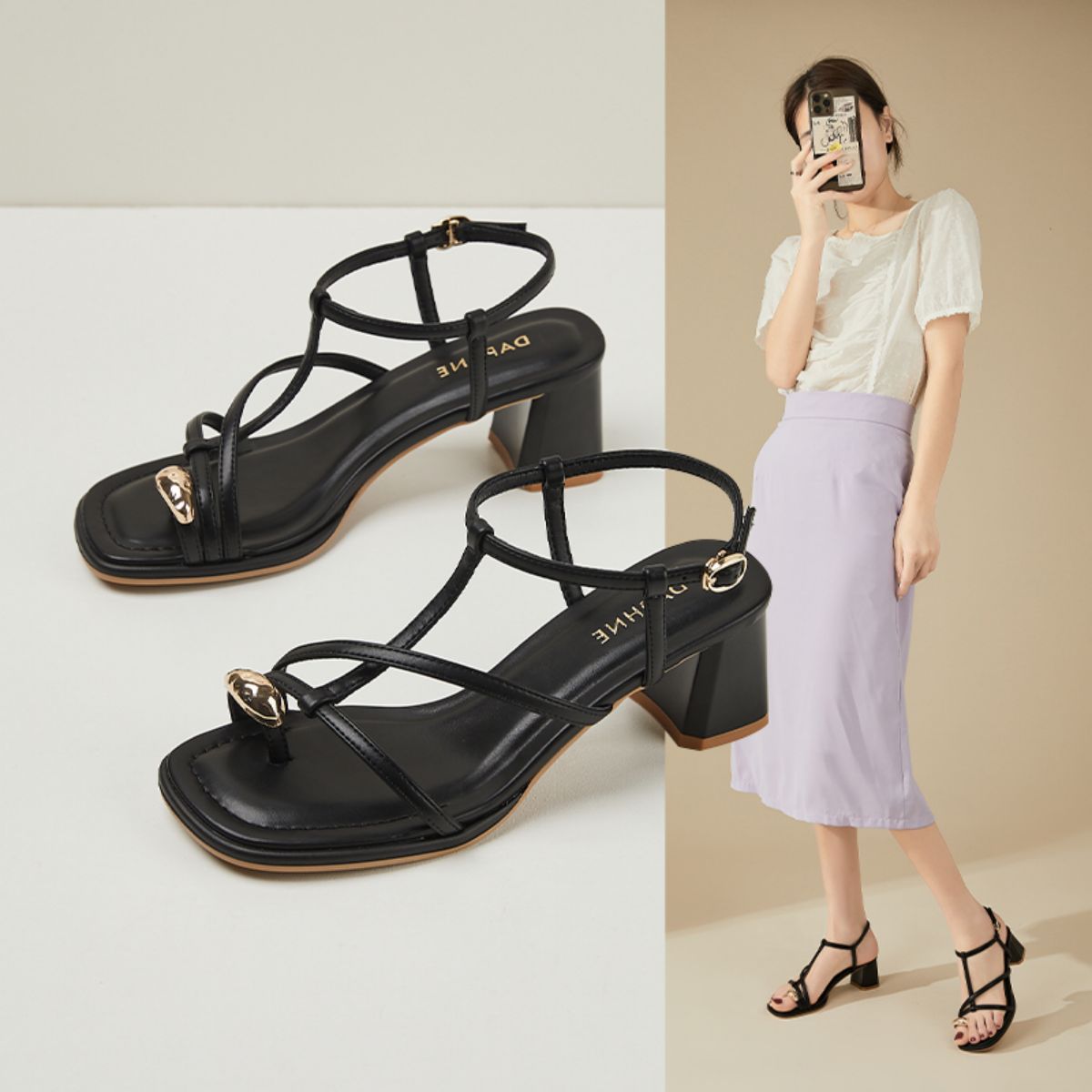 【金属扣饰】百搭方头粗跟凉鞋女包头凉鞋女士夏配裙子气质凉鞋女 769408